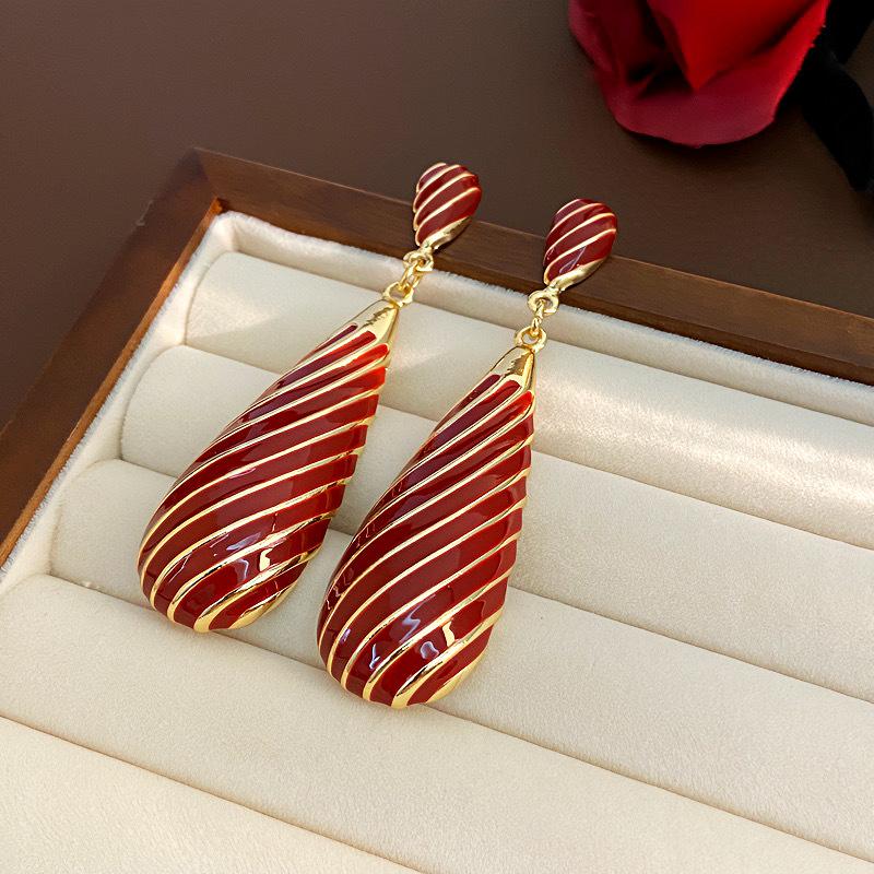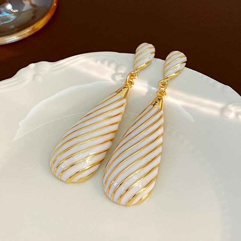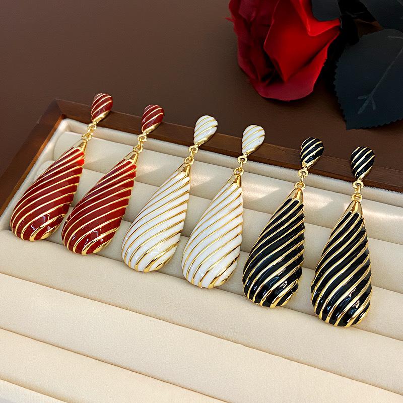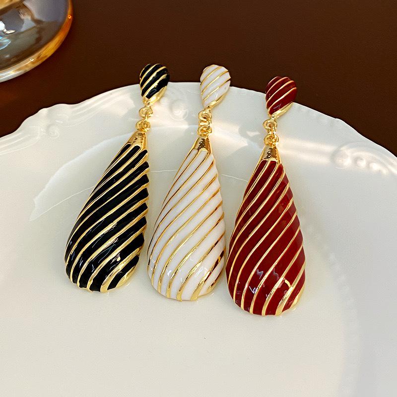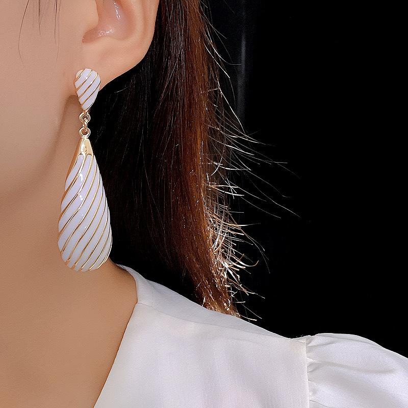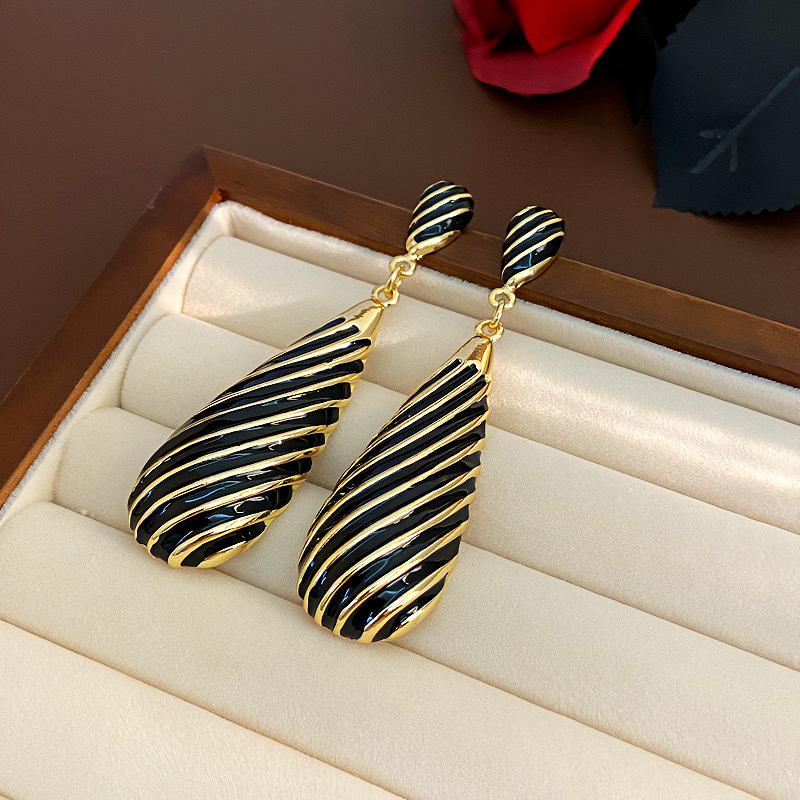 Pendientes largos de gota de agua con diseño de nicho, elegantes y distintivos, con rayas de metal, que combinan con todo.