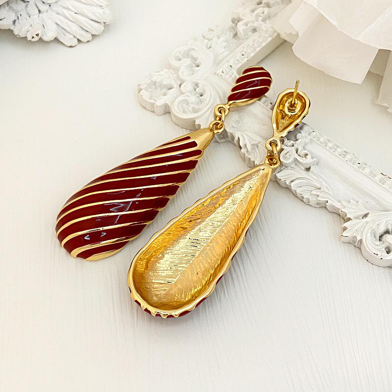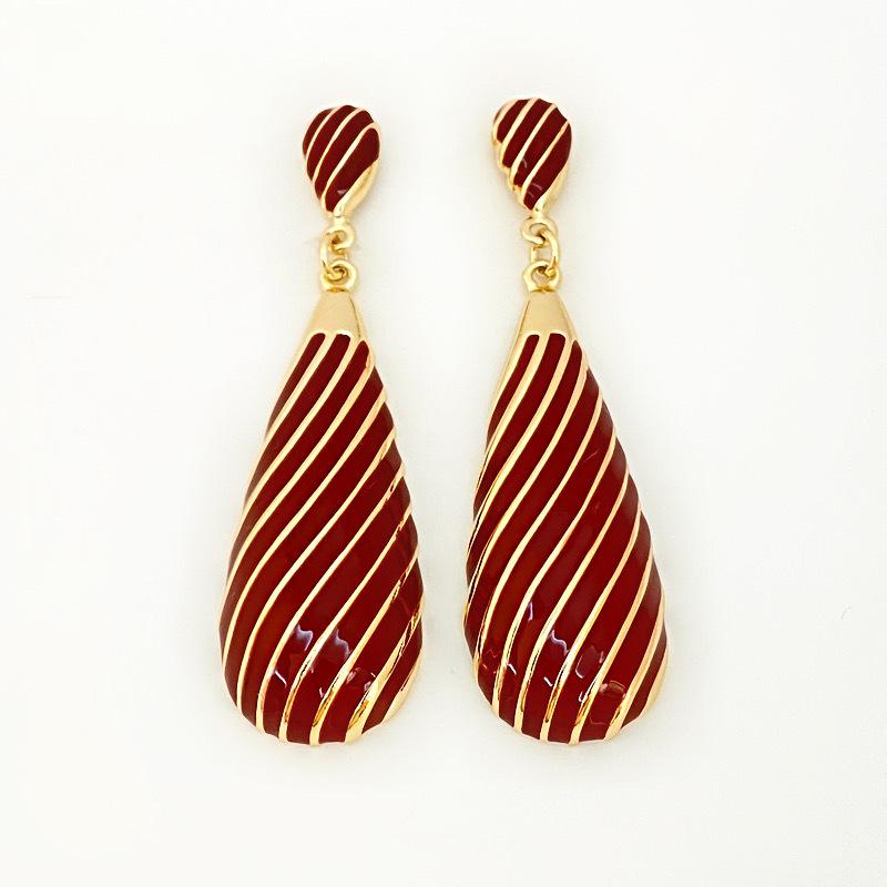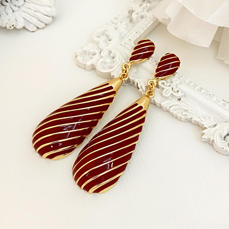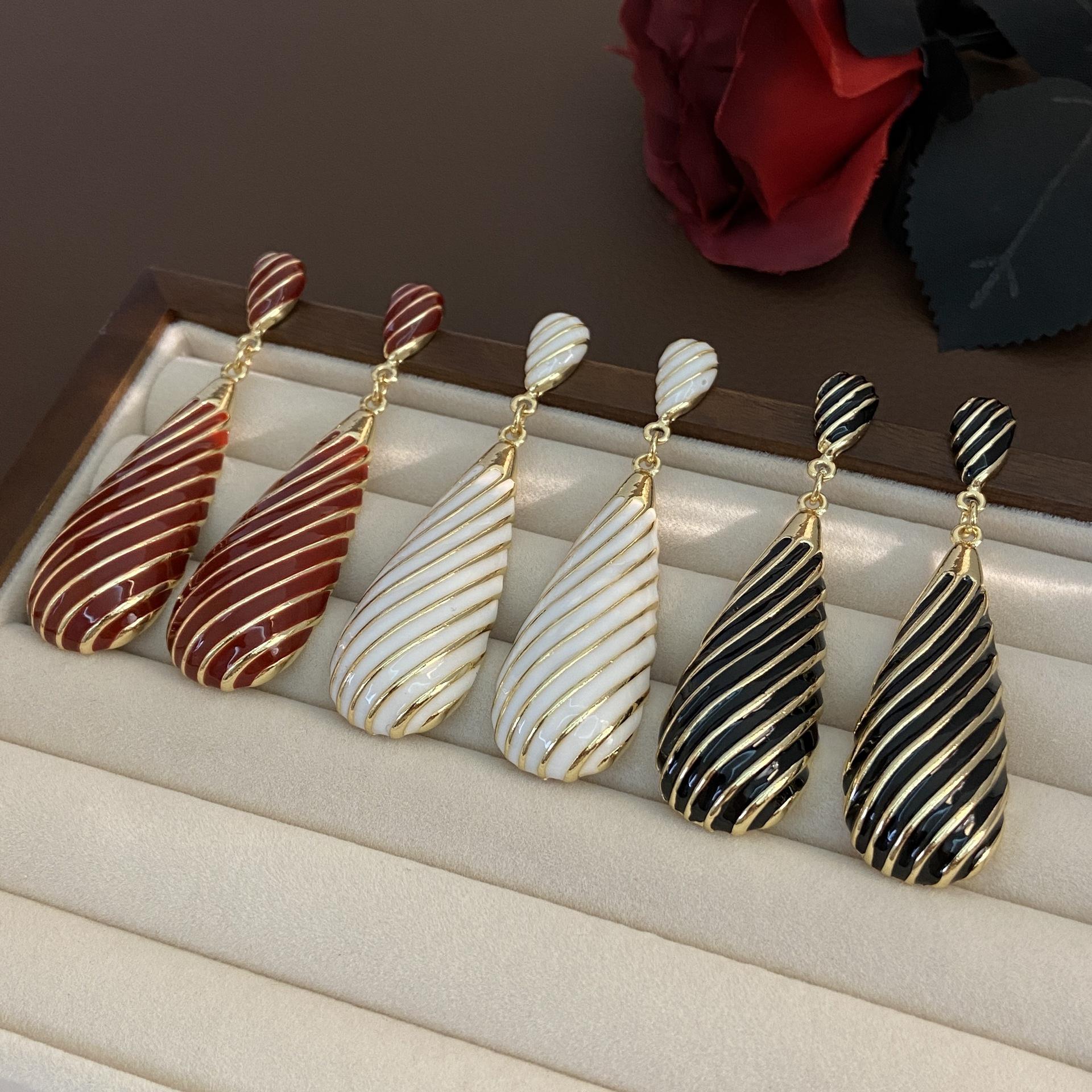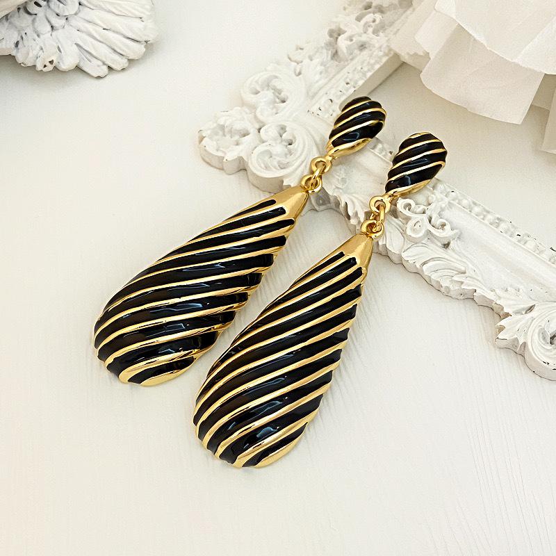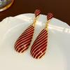 Pendientes largos de gota de agua con diseño de nicho, elegantes y distintivos, con rayas de metal, que combinan con todo.