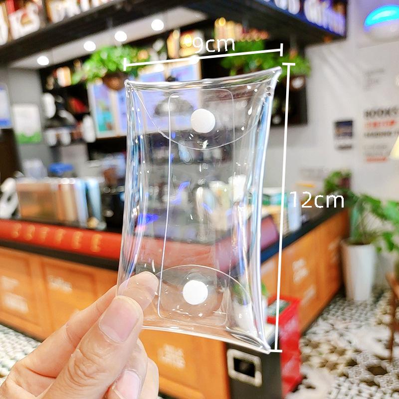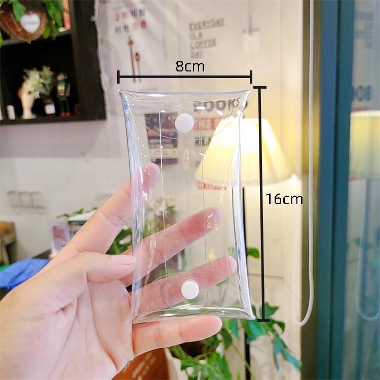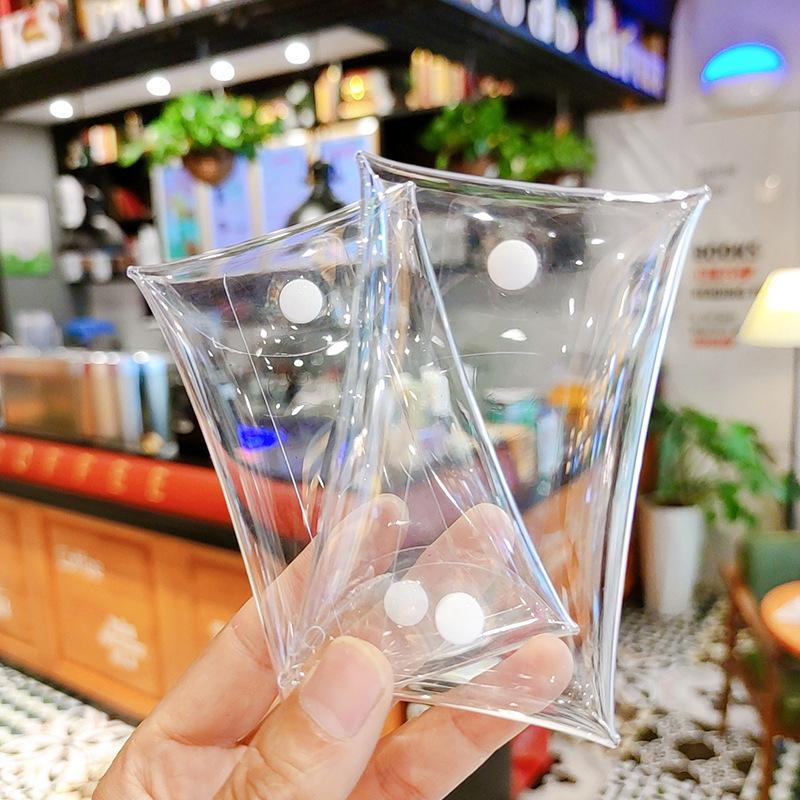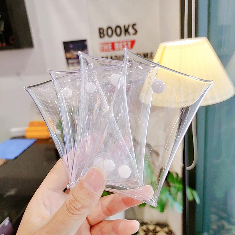 Bolsa de PVC transparente con botón de metal grueso, llavero de mano, auricular, monedero, bolsa de plástico para guardar monedas.