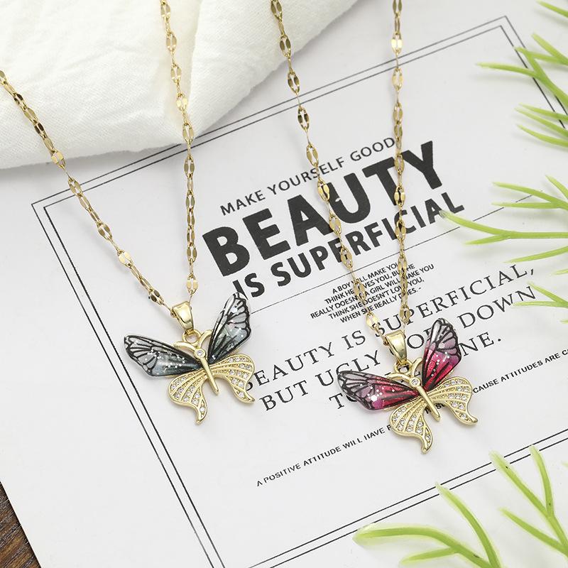 Collar con colgante de mariposa multicolor para mujer, de moda bohemia y superventas en Europa y América, de acero de titanio y clavícula, fabricantes al por mayor