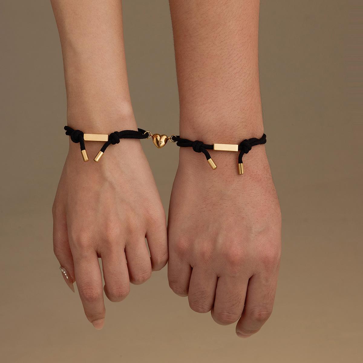 Pulsera de pareja creativa con letras cuadradas de acero de titanio de amor magnético nuevo estilo europeo y americano transfronterizo para hombres y mujeres con el mismo estilo