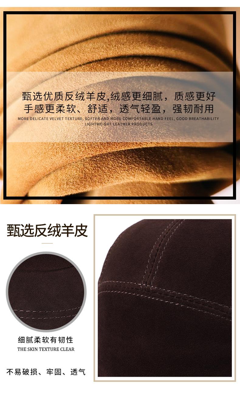 Brown (suede sheepskin), Black (suede sheepskin), Yellow brown (suede sheepskin), Army green (suede sheepskin)