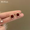 Pendientes de perla con aguja de plata S925, pendientes de té, diseño de nicho, pendientes azules retro, pendientes sencillos de estilo frío.