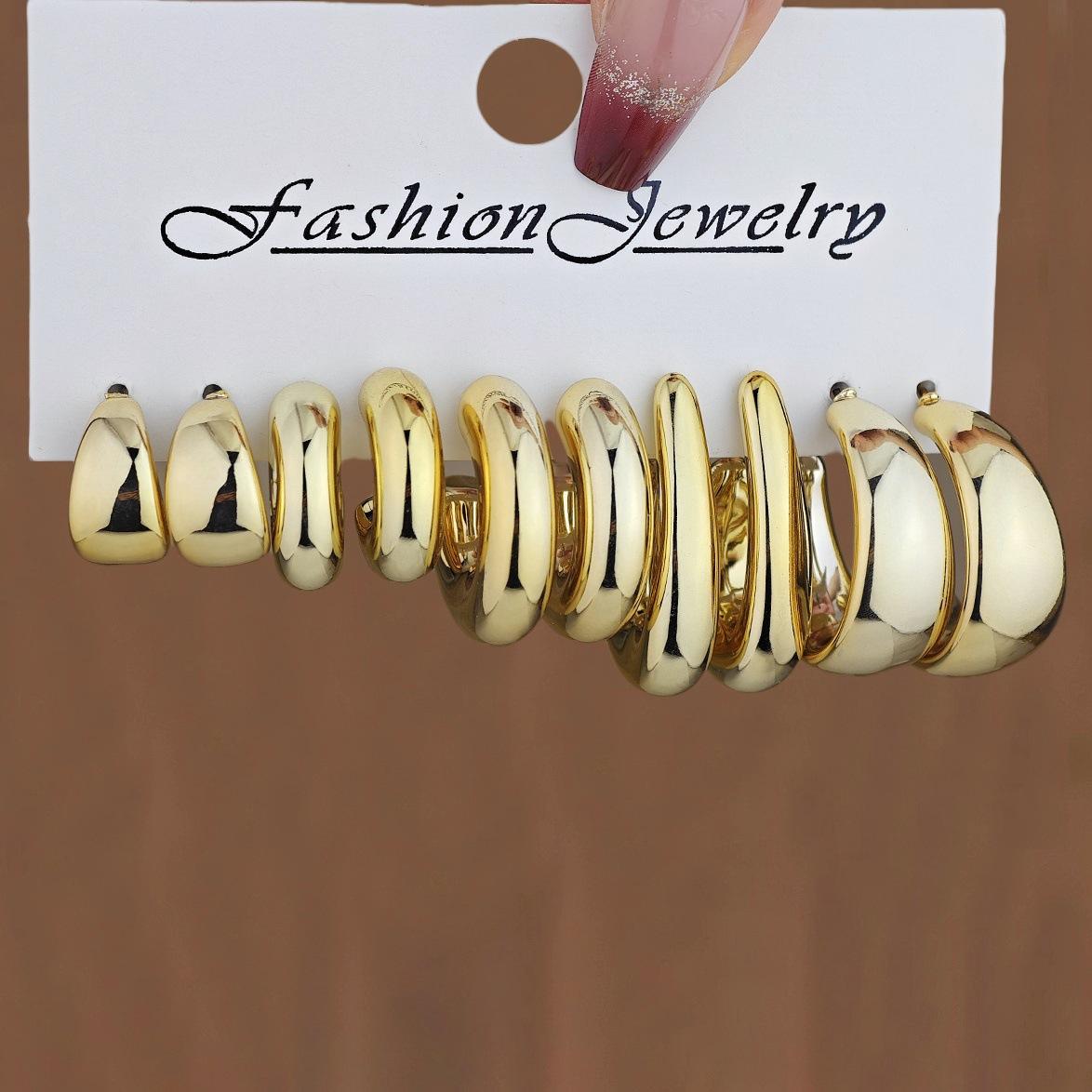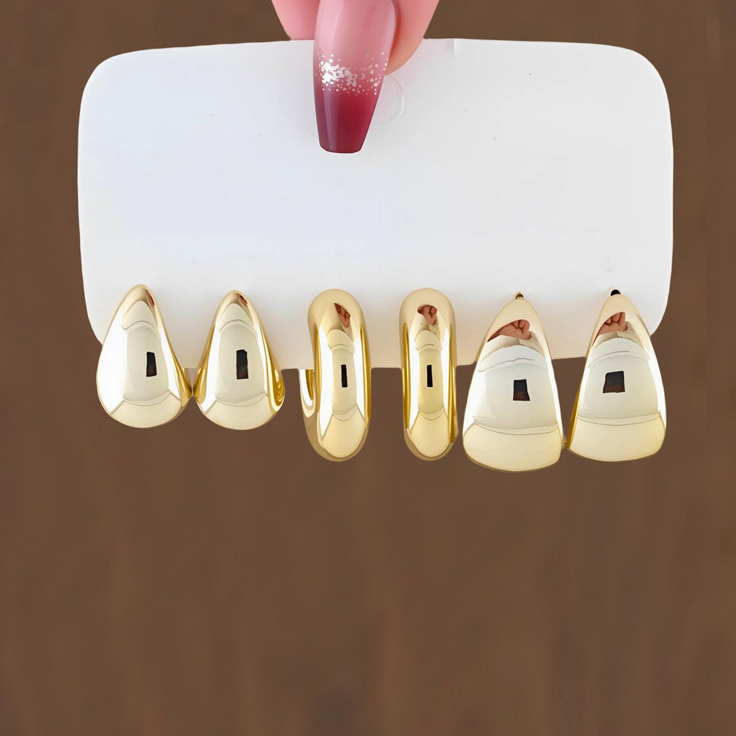 Juego de Aretes Ccb de Lujo Accesible 6 Piezas Europeo y Americano Transfronterizo Nueva Moda Simple Creativo Elegante Anillo Gota de Agua Venta al por Mayor