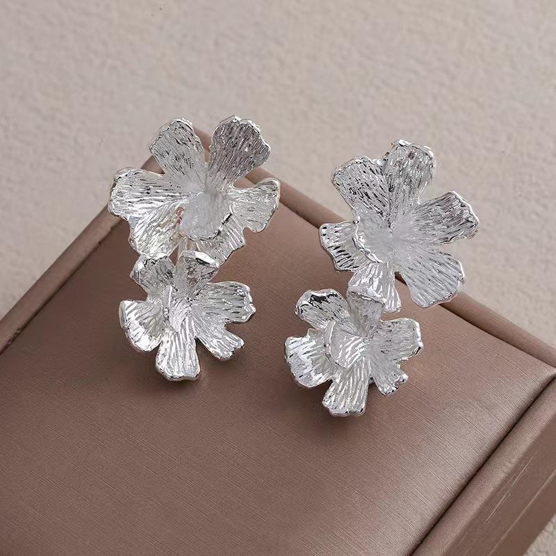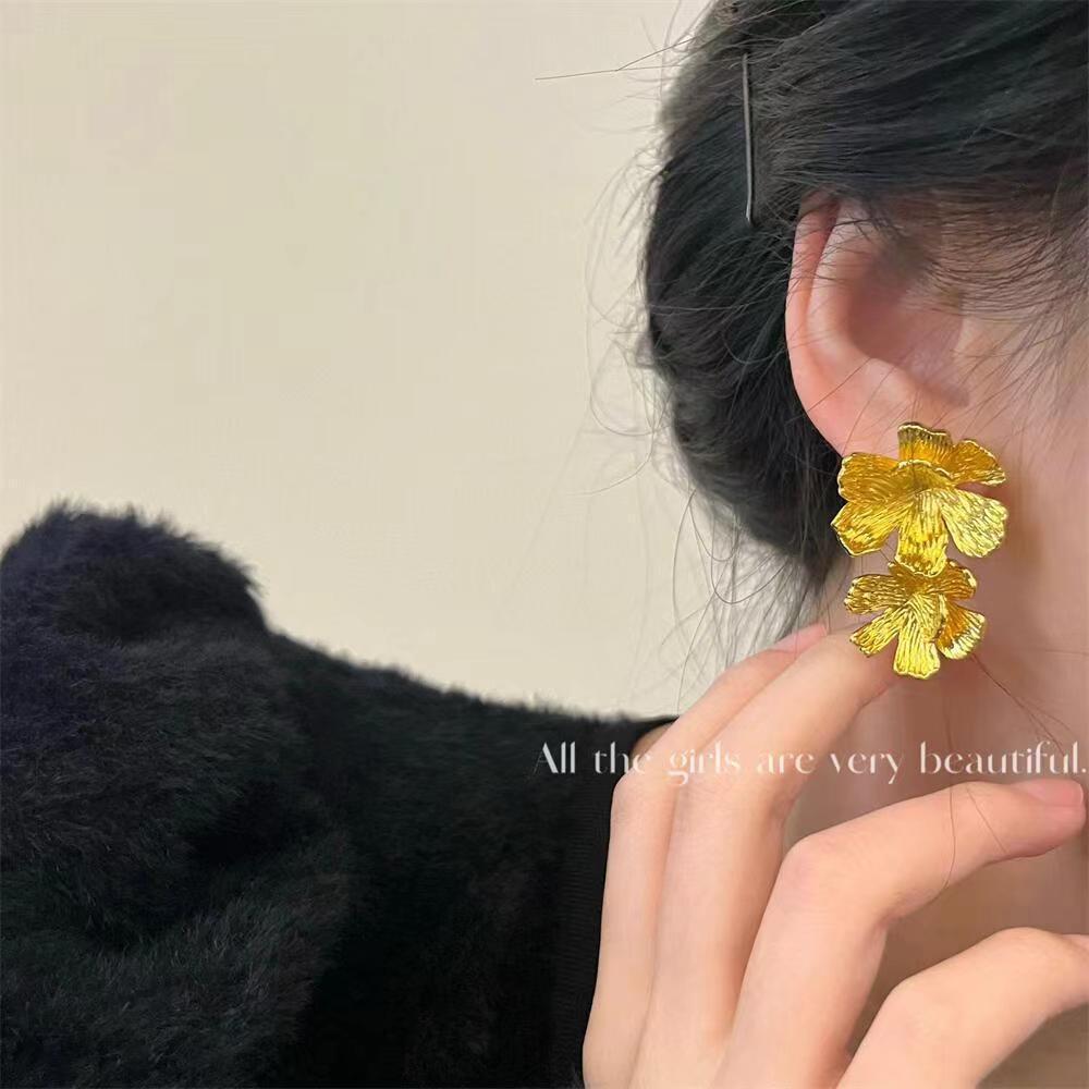 Pendientes vintage de metal con diseño de flores de nicho para mujer, ligeros, de lujo, personalizados, a la moda, elegantes, de industria pesada, combinables con todo.