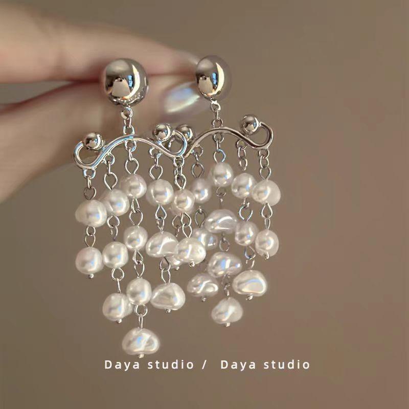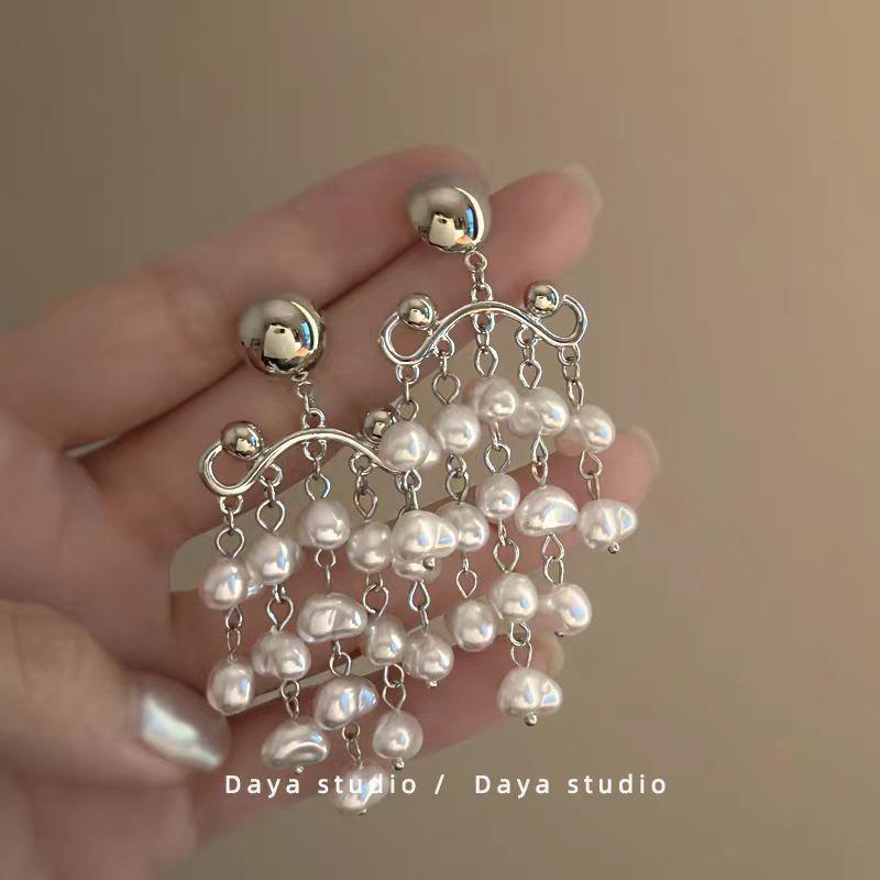 Pendientes de borlas de perlas de imitación de estilo francés, largos, modernos, ligeros, de lujo, elegantes, de alta gama, combinables con todo para mujer.