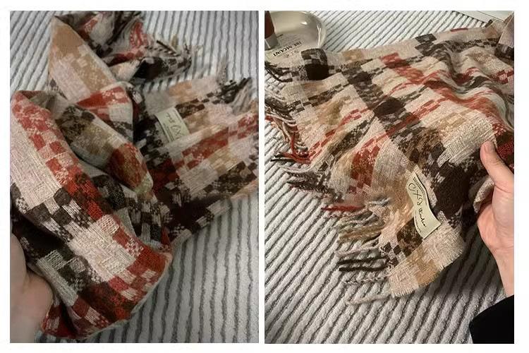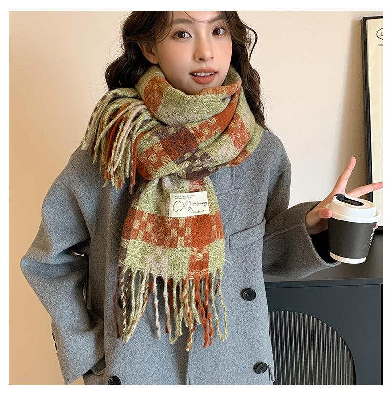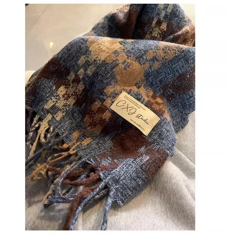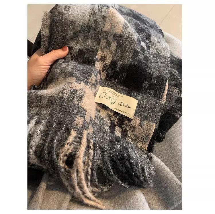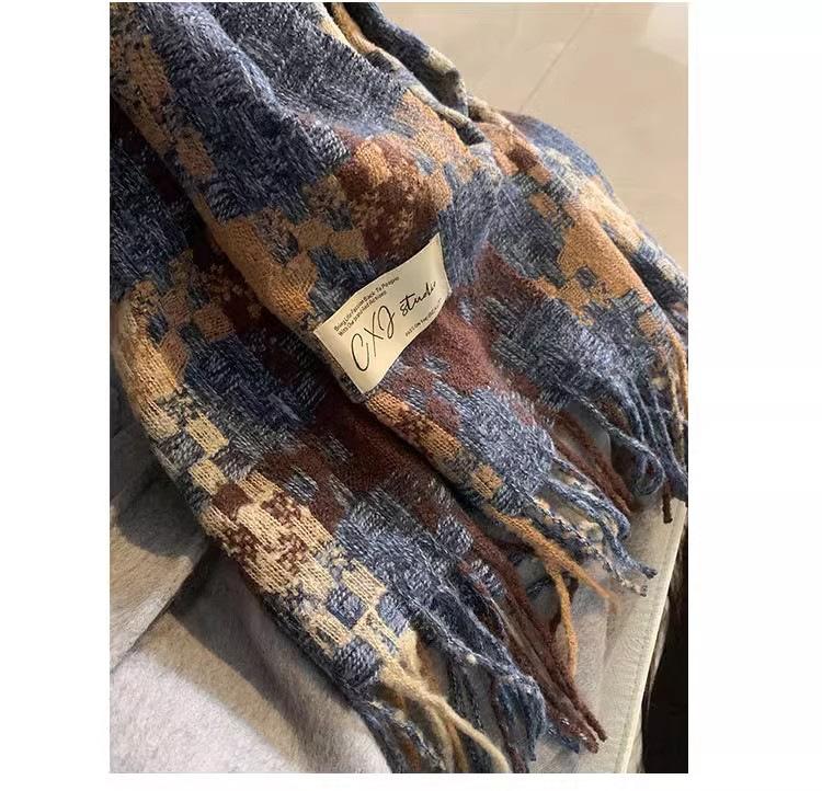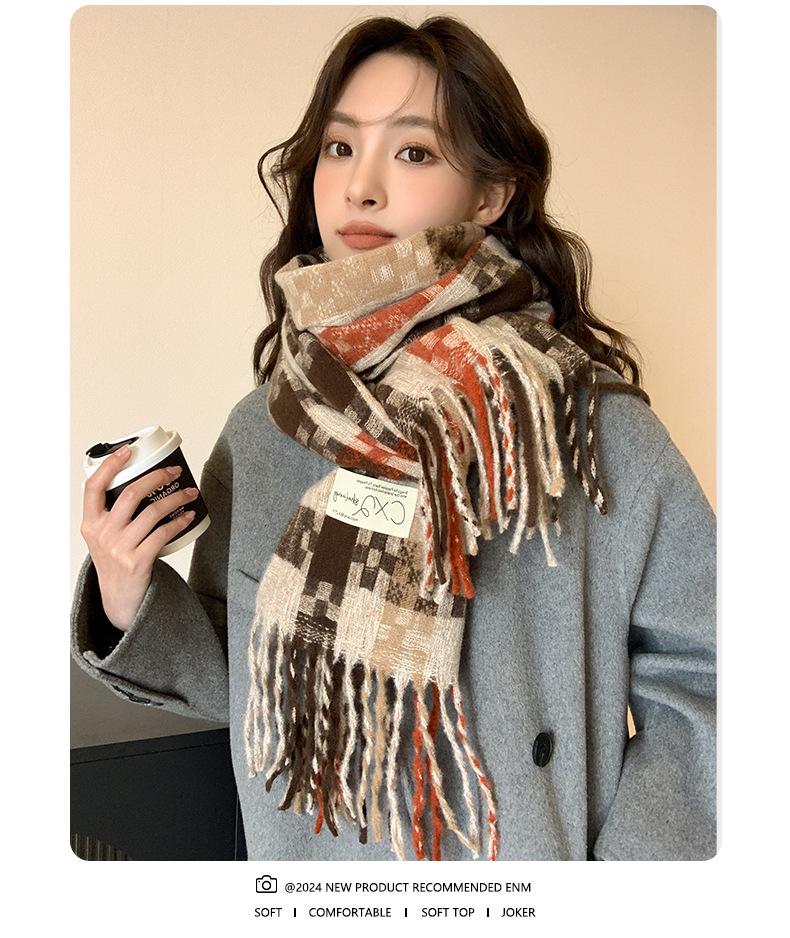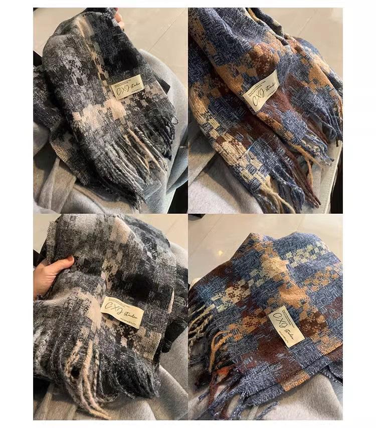 Compra Bufanda cálida con borlas tejidas a cuadros con atmósfera otoñal e invernal para hombres y mujeres, chal de cuello largo grueso extragrande y cálido. al por mayor en Joom.pro