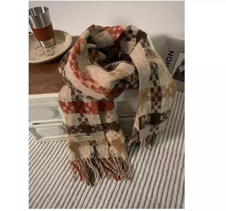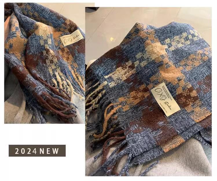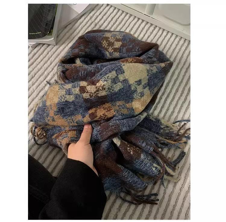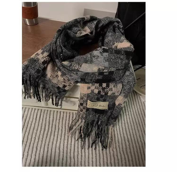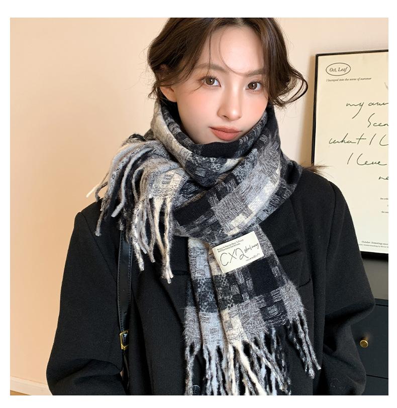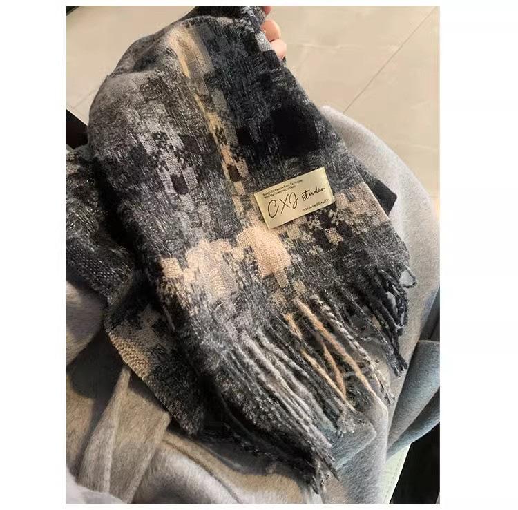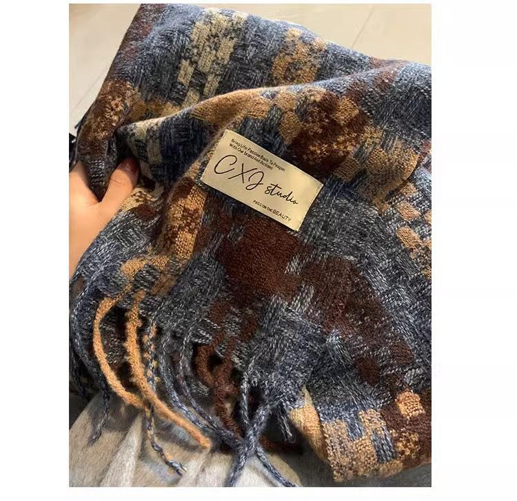 Compra Bufanda cálida con borlas tejidas a cuadros con atmósfera otoñal e invernal para hombres y mujeres, chal de cuello largo grueso extragrande y cálido. al por mayor en Joom.pro