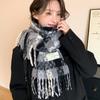 Bufanda cálida con borlas tejidas a cuadros con atmósfera otoñal e invernal para hombres y mujeres, chal de cuello largo grueso extragrande y cálido.