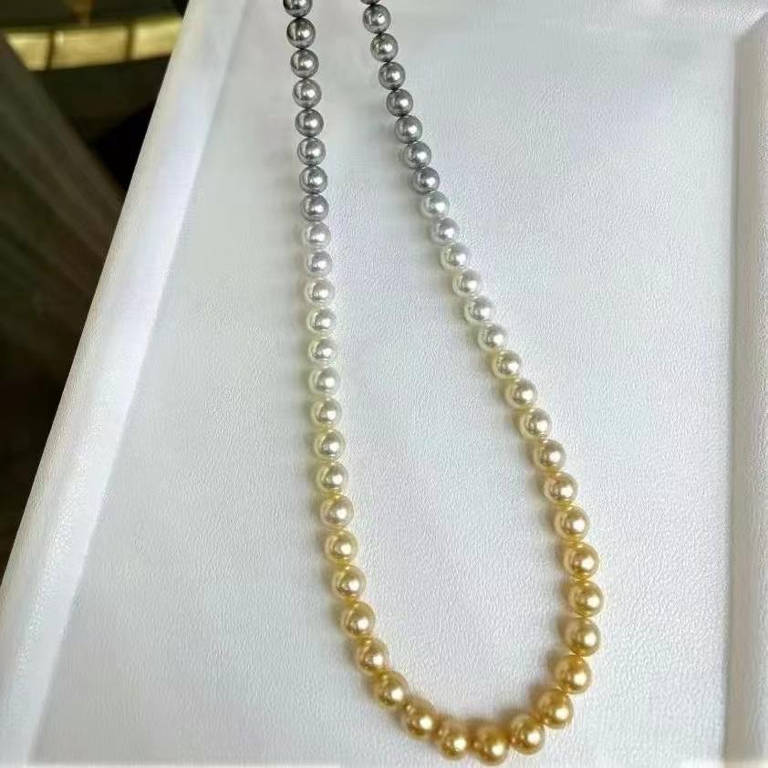 Three-color gradient pearl necklace detachable