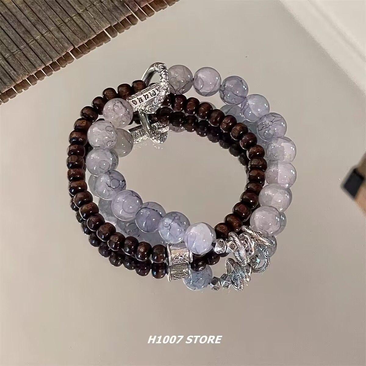 Pulsera Original para Pareja Antigua Hecha a Mano con Esmalte Panlong y Cuentas Pulsera para Hombre Pulsera para Mujer Joyería para Muñeca de Nuevo Estilo Chino
