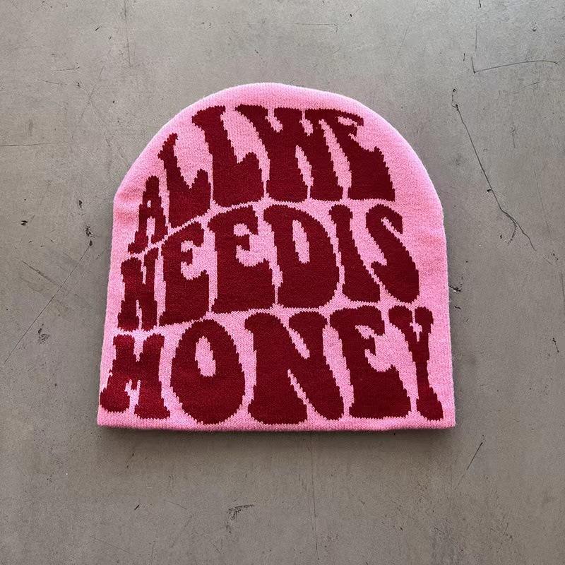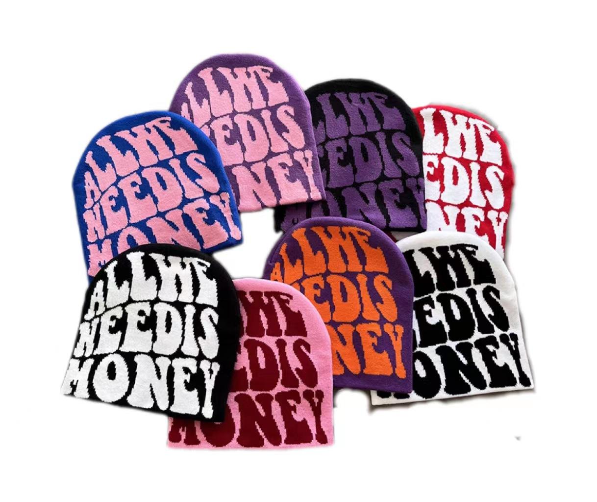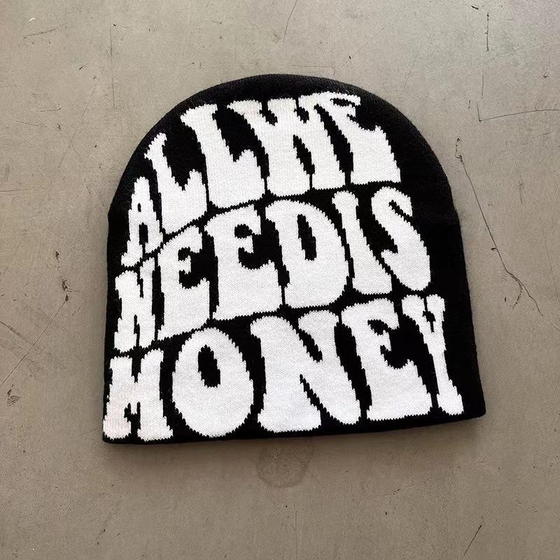 23. Jersey de comercio exterior transfronterizo de otoño e invierno, gorro jacquard con letras de moda, gorro de punto de lana para adultos, para hombres y mujeres europeos y americanos.