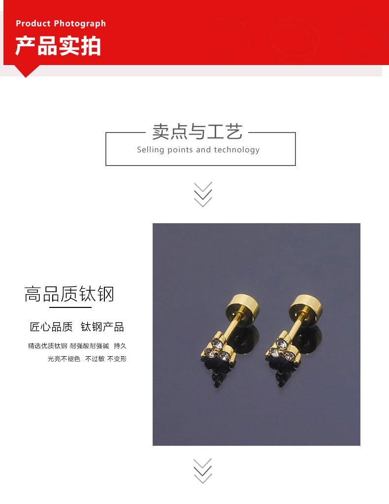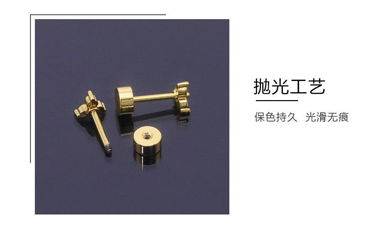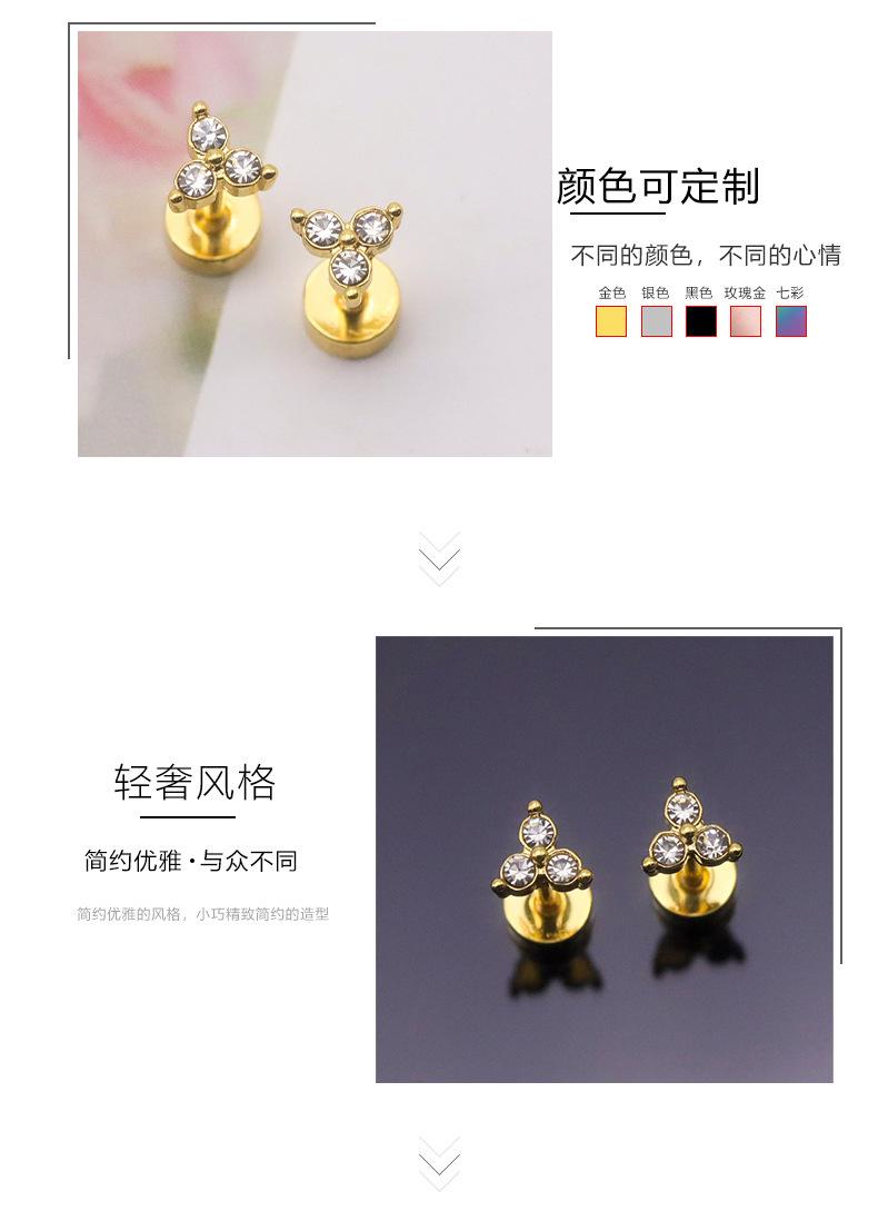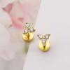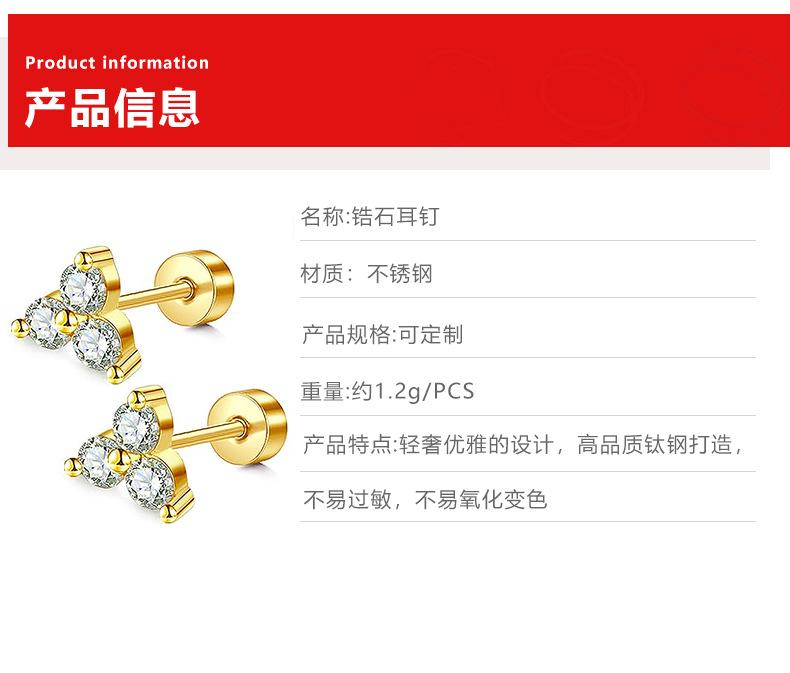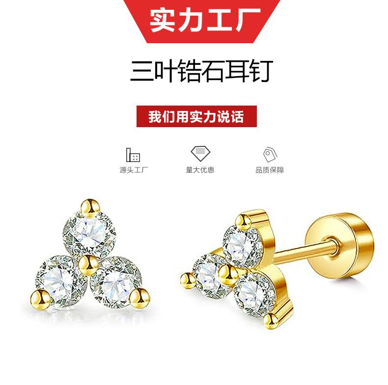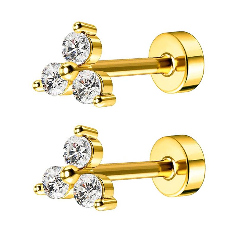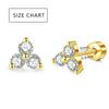 Aretes pequeños de acero inoxidable dorado con forma de tres hojas de circonita, pequeños exquisitos, seguros, redondos tipo pastel, con cierre de tuerca