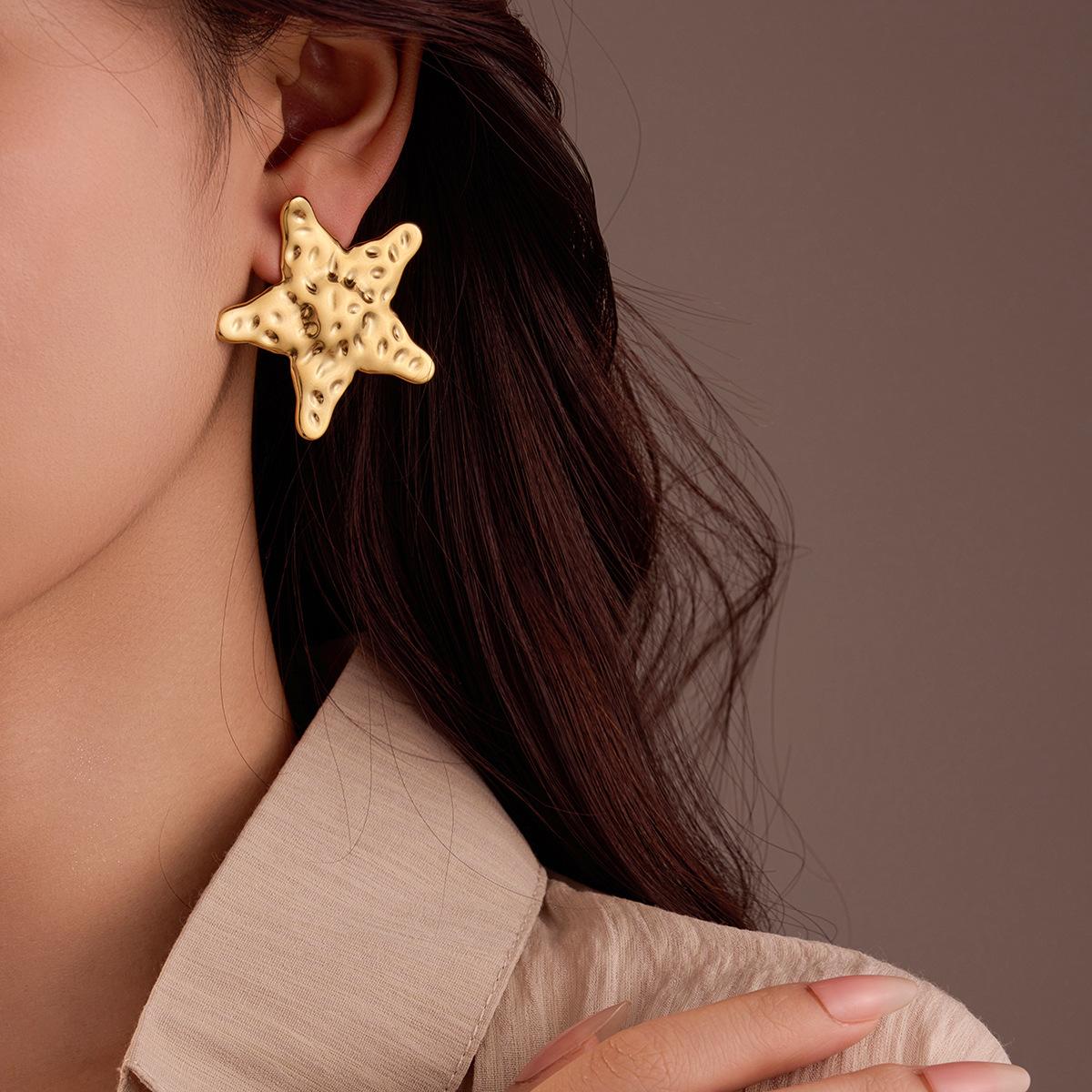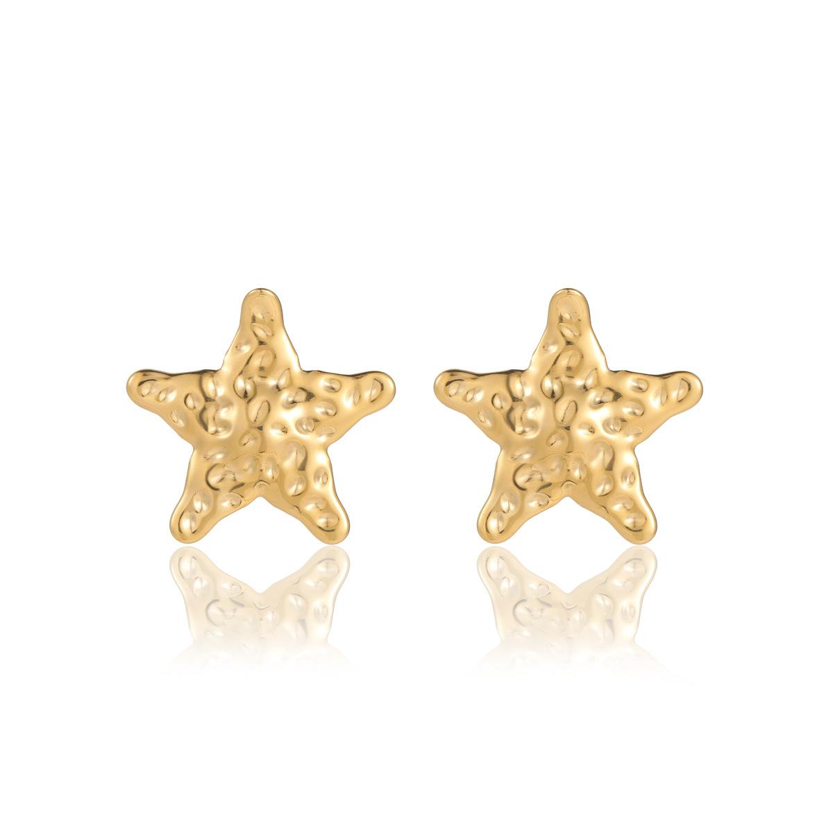 Pendientes de Acero de Titanio con Estilo Europeo y Americano de Moda Transfronteriza para Combinar con Todo, Estrella de Cinco Puntas, Patrón de Martillo, Exquisitos, Atmosféricos, Pendientes de Acero Inoxidable