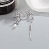 Aretes Asimétricos de Ojo de Gato Mariposa para Otoño e Invierno para Mujer Aretes de Perla de Alta Gama Ligeramente Lujosos Elegantes Borla para la Oreja