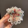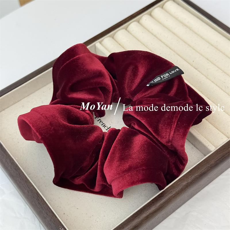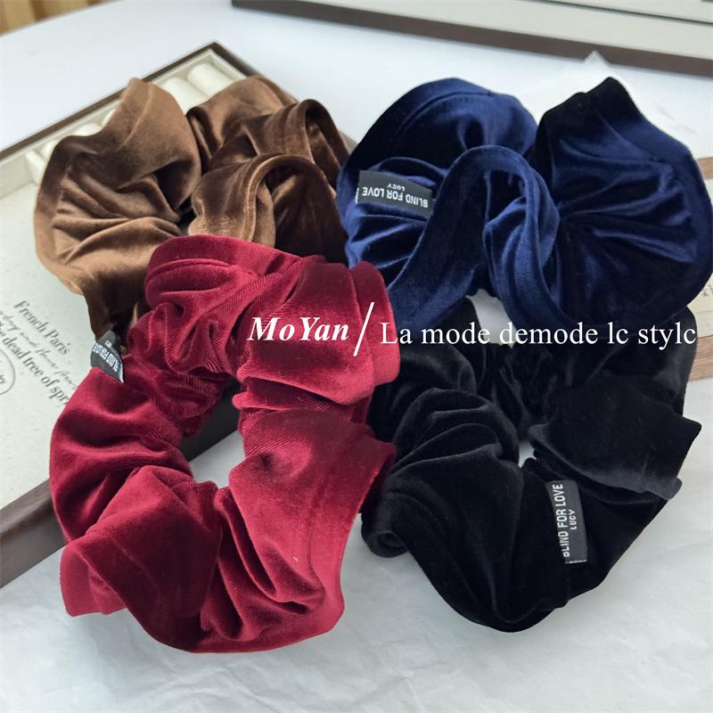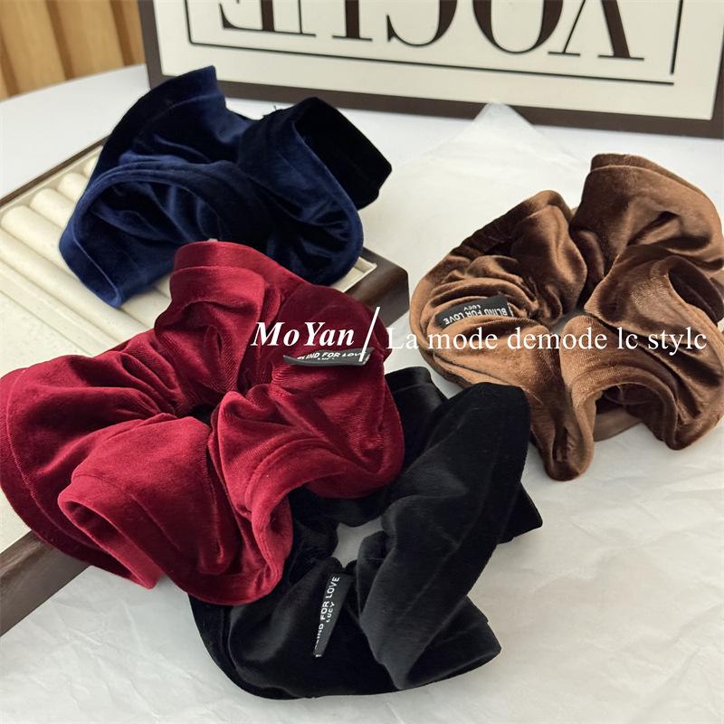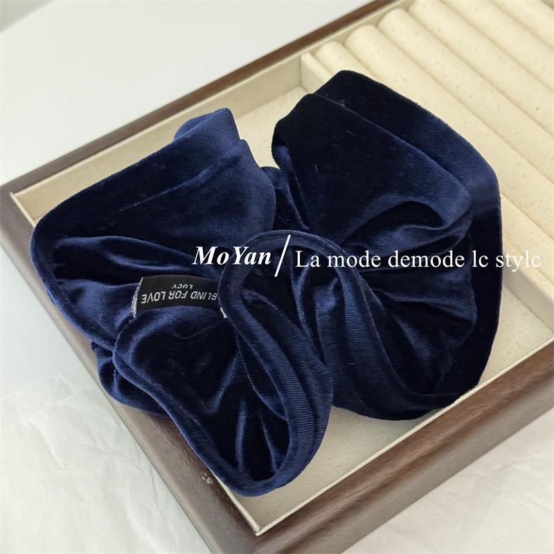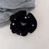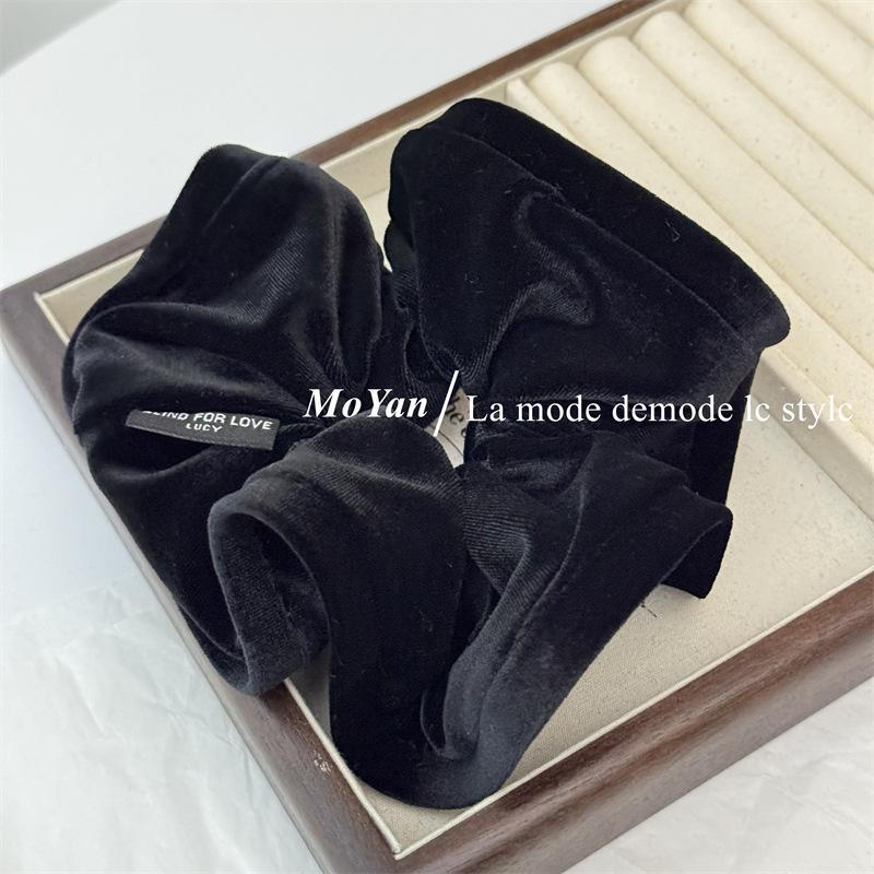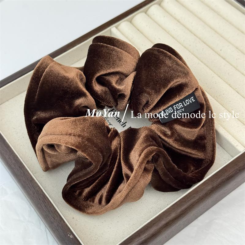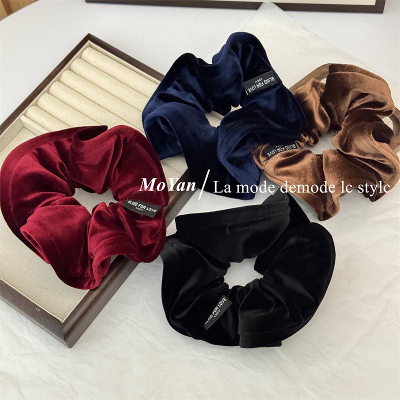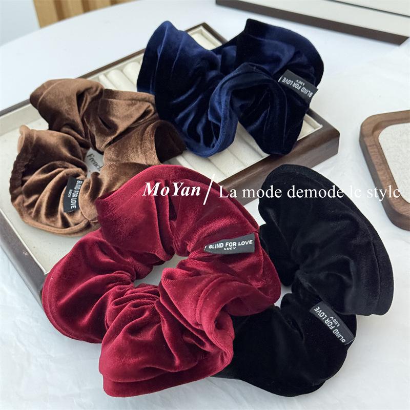 Anillo para el cabello de alta gama de terciopelo plisado para el intestino grueso, estilo retro, elegante, para mujer, con cola de caballo sencilla y combinable, con flores para la cabeza.