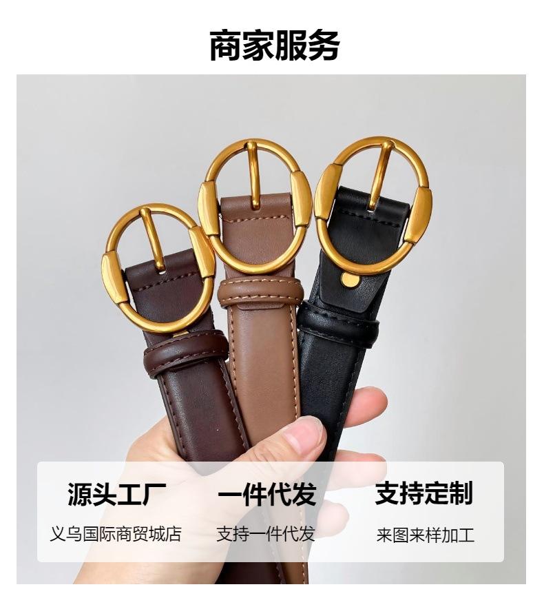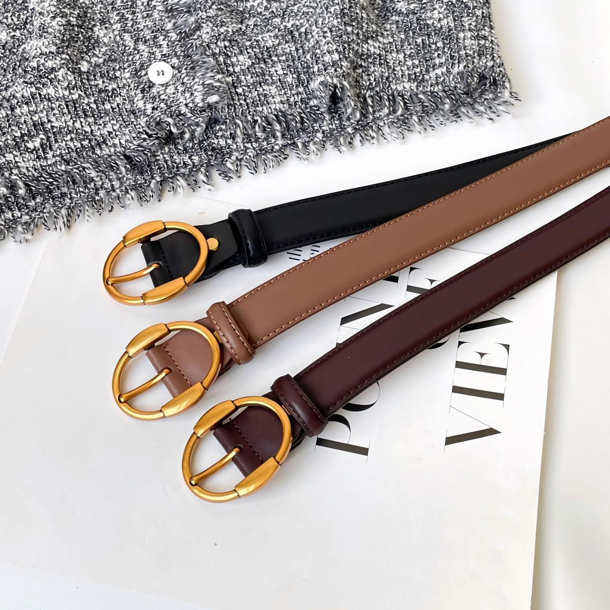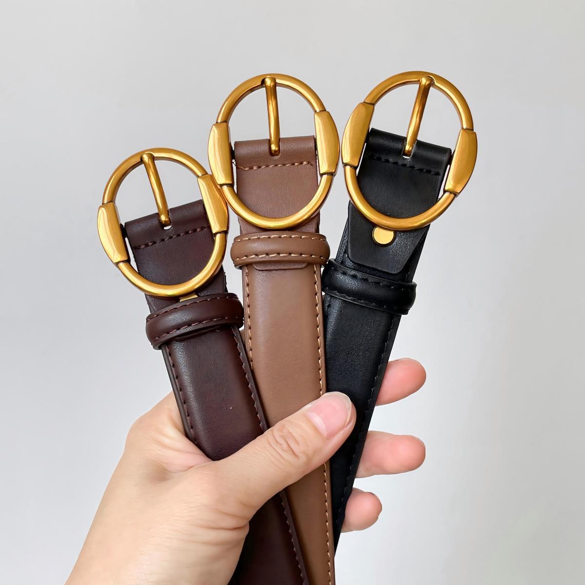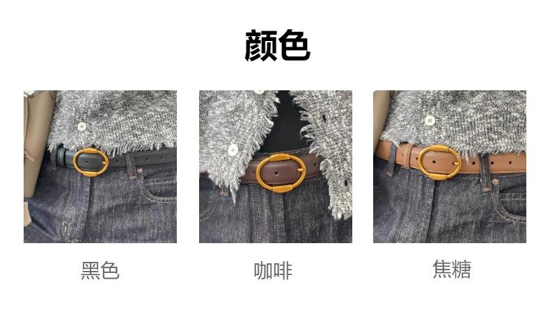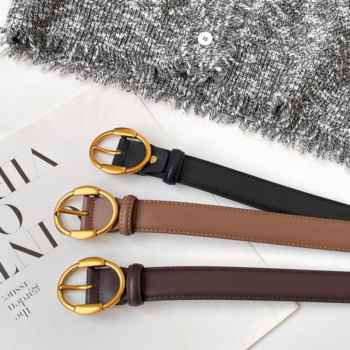 Nuevo Cinturón de Cuero con Hebilla Antigua de Alta Gama para Mujer, Decoración Versátil, Cinturón de Cuero Simple de Dos Capas