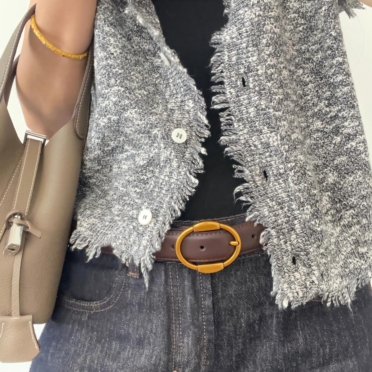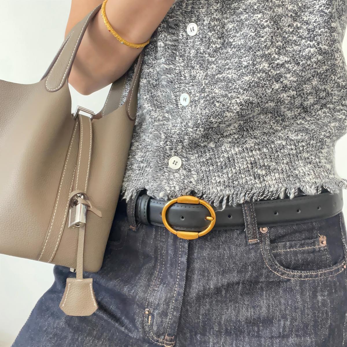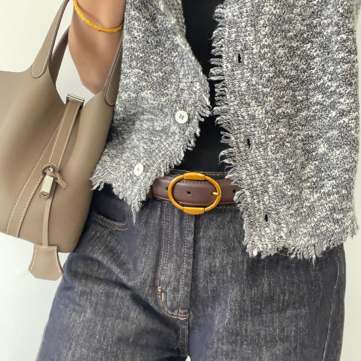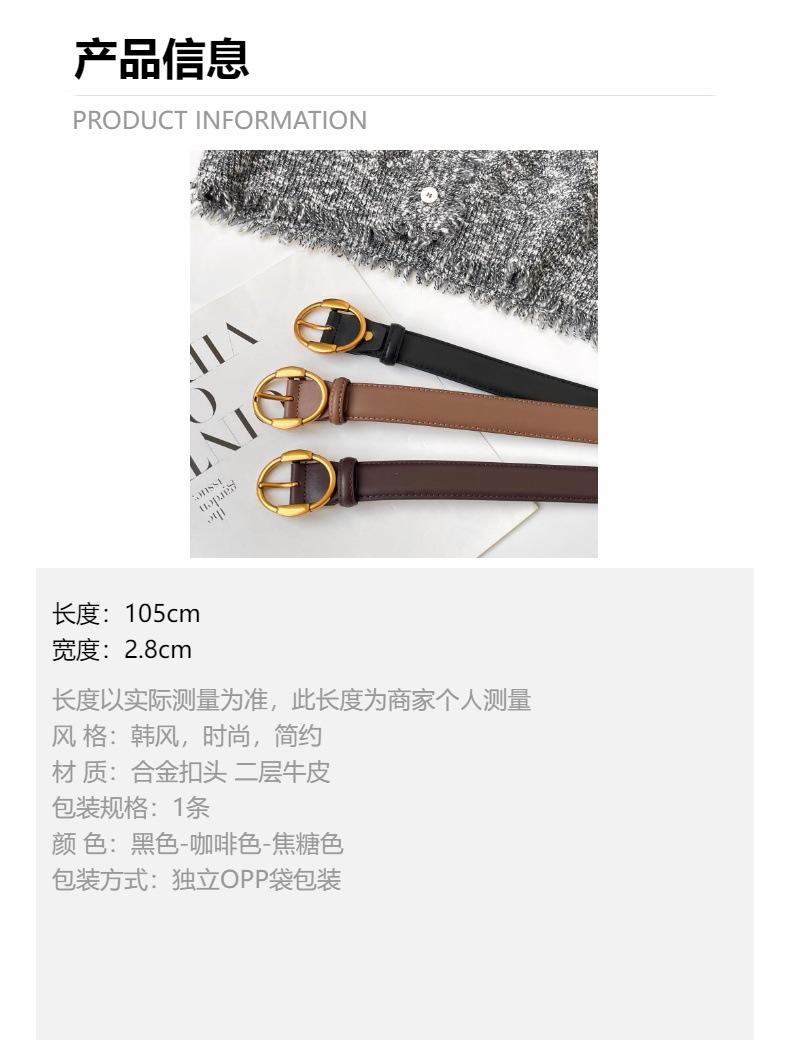 Nuevo Cinturón de Cuero con Hebilla Antigua de Alta Gama para Mujer, Decoración Versátil, Cinturón de Cuero Simple de Dos Capas