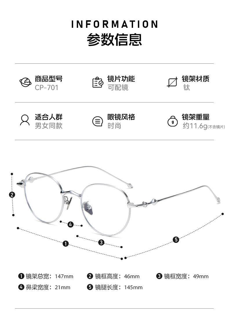 G-M con montura para miopía de titanio puro ultraligero para mujer, montura redonda pequeña anti-luz azul, número de altura, montura retro de Shenzhen CP701