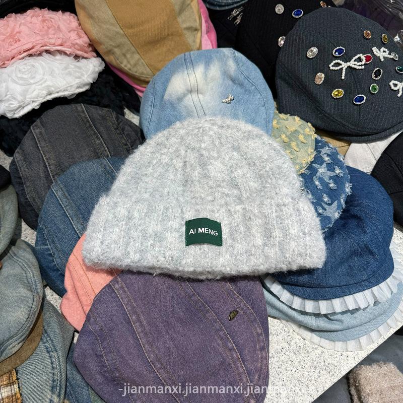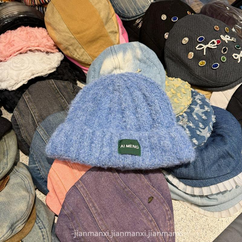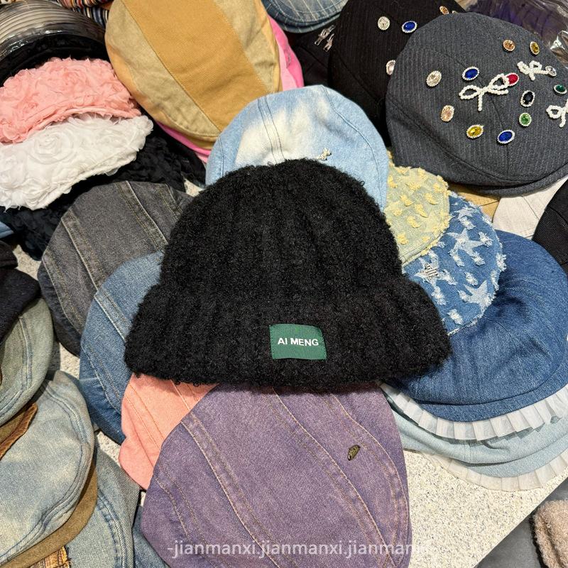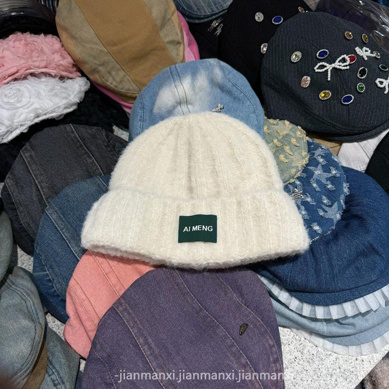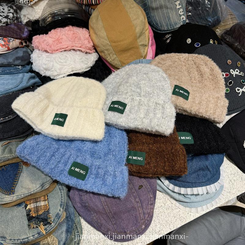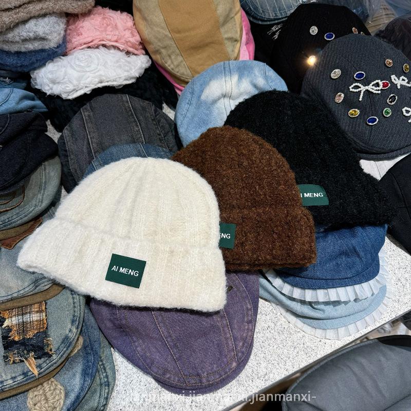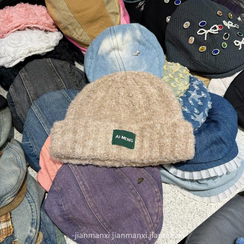 Sombrero de Punto Grueso y Cálido de Otoño e Invierno Estilo Coreano Moda Sombrero de Lana Acolchado para Pareja Combinación con Todo Muestra el Rostro Pequeño Gorro Pulóver Frío Moderno