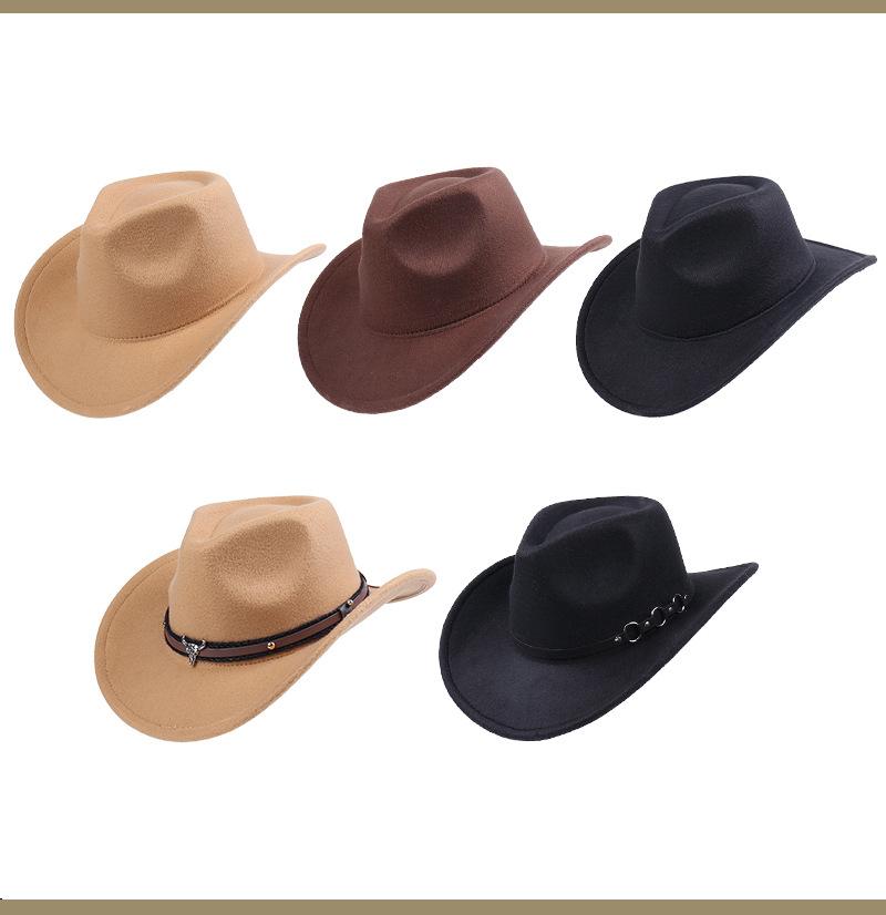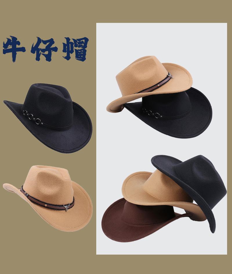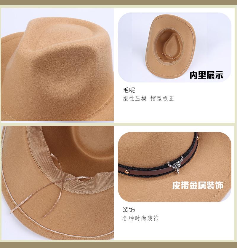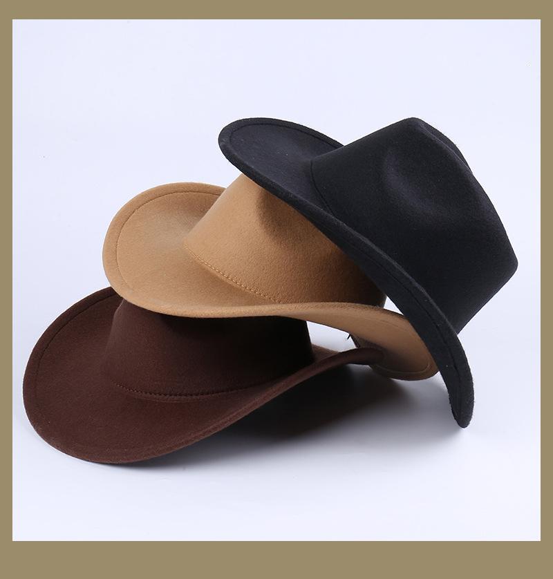 Sombrero de jazz de moda de comercio exterior europeo y americano, sombrero de lana para mujer, sombrero de vaquero de ala grande retro de lana para primavera, otoño e invierno, sombrero de copa.