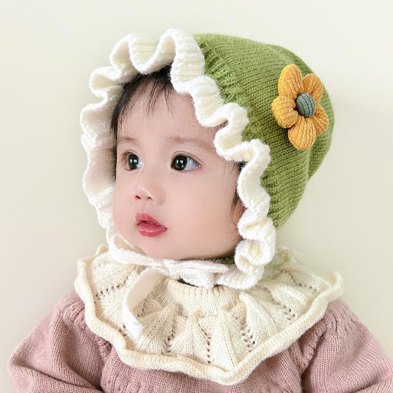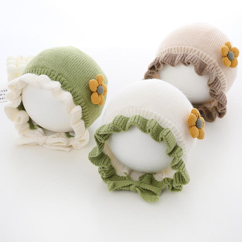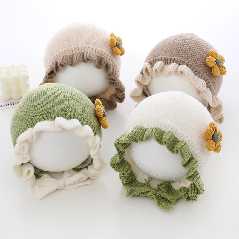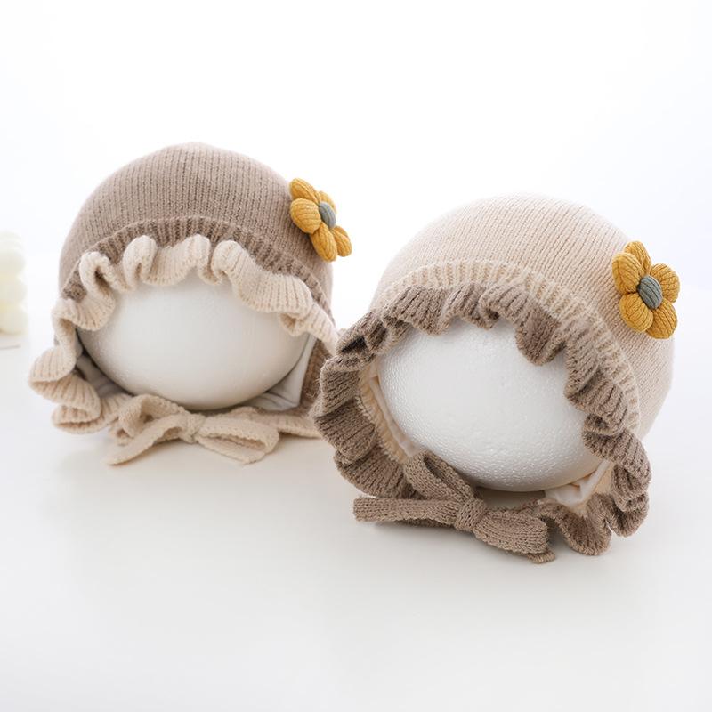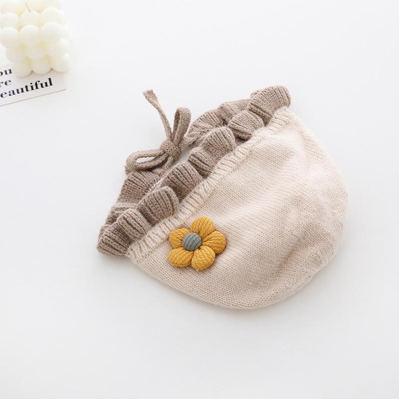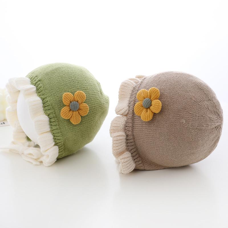 Compra Sombrero de niña flor sombrero de corte otoño e invierno sombrero de lana de niña linda orejeras tejidas para bebé ltp9 al por mayor en Joom.pro