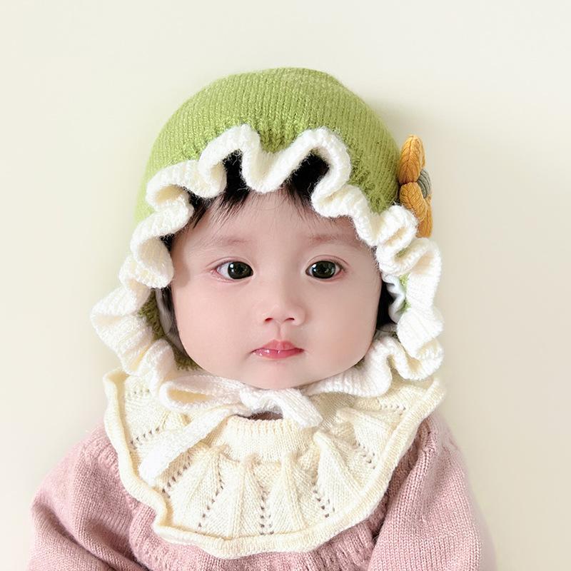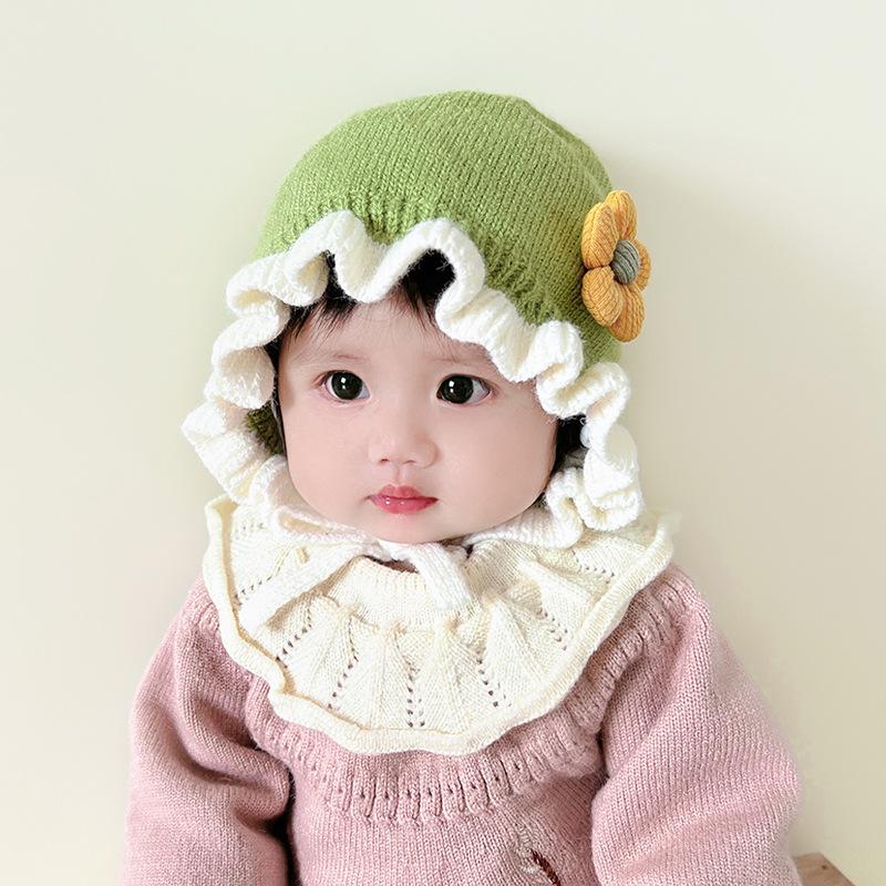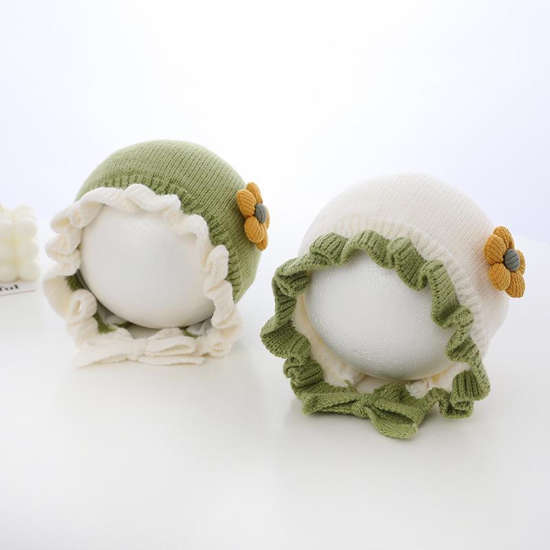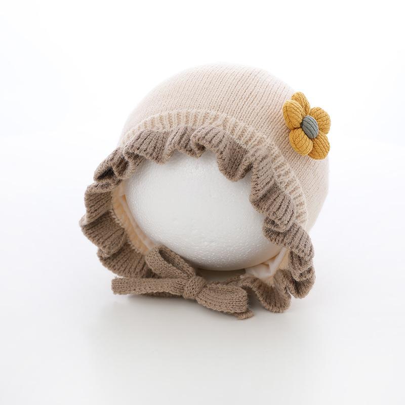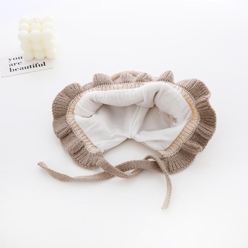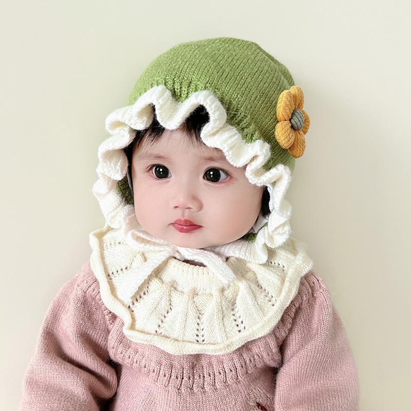 Compra Sombrero de niña flor sombrero de corte otoño e invierno sombrero de lana de niña linda orejeras tejidas para bebé ltp9 al por mayor en Joom.pro