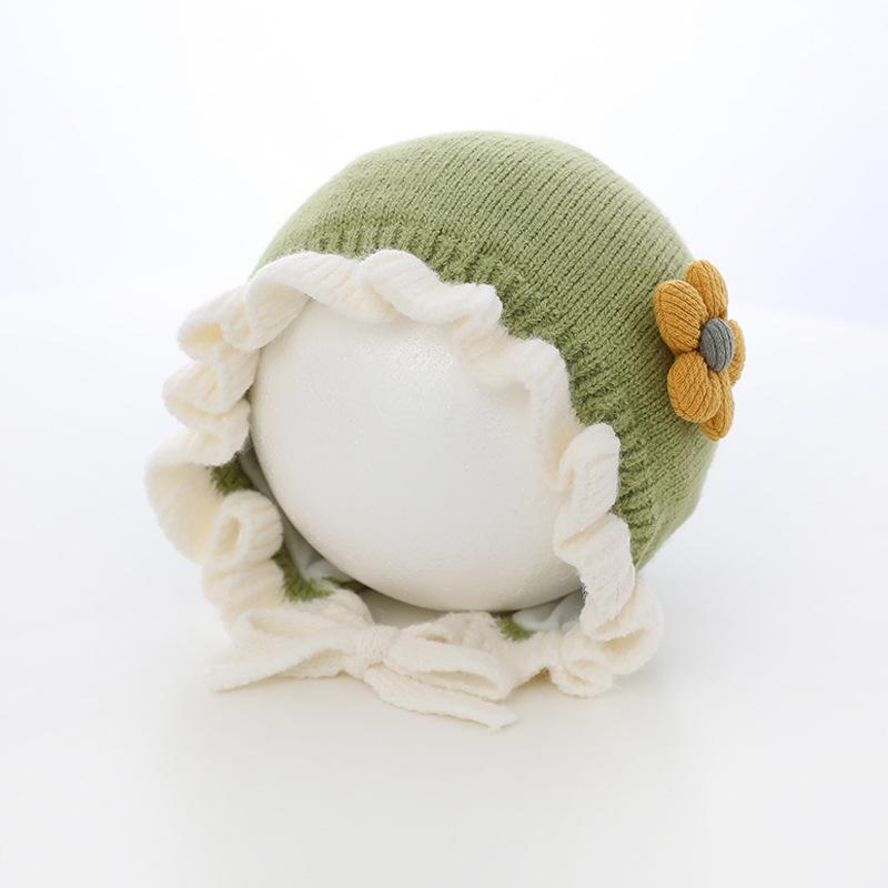 Sombrero de niña flor sombrero de corte otoño e invierno sombrero de lana de niña linda orejeras tejidas para bebé ltp9