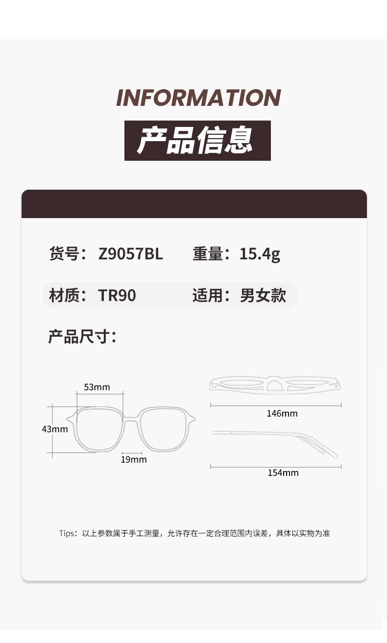 Montura de gafas cuadrada TR90 ultraligera, montura de gafas ajustable para miopía profesional de moda de estilo coreano para hombres y mujeres 9057BL