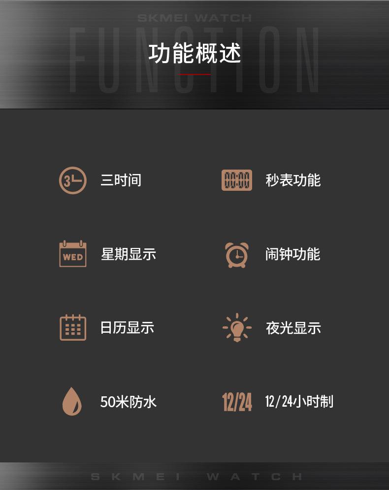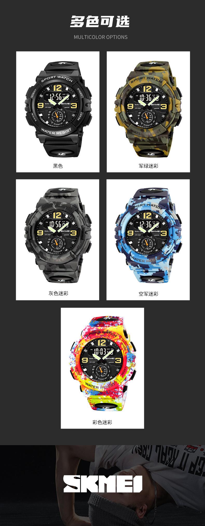 Reloj electrónico deportivo de moda multifunción de dos pines para hombre, venta al por mayor transfronteriza, Skmei, fábrica, belleza del tiempo