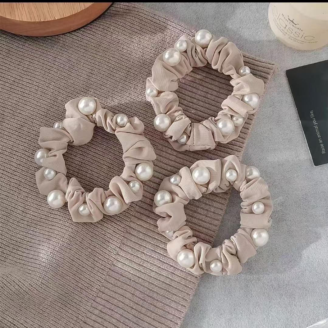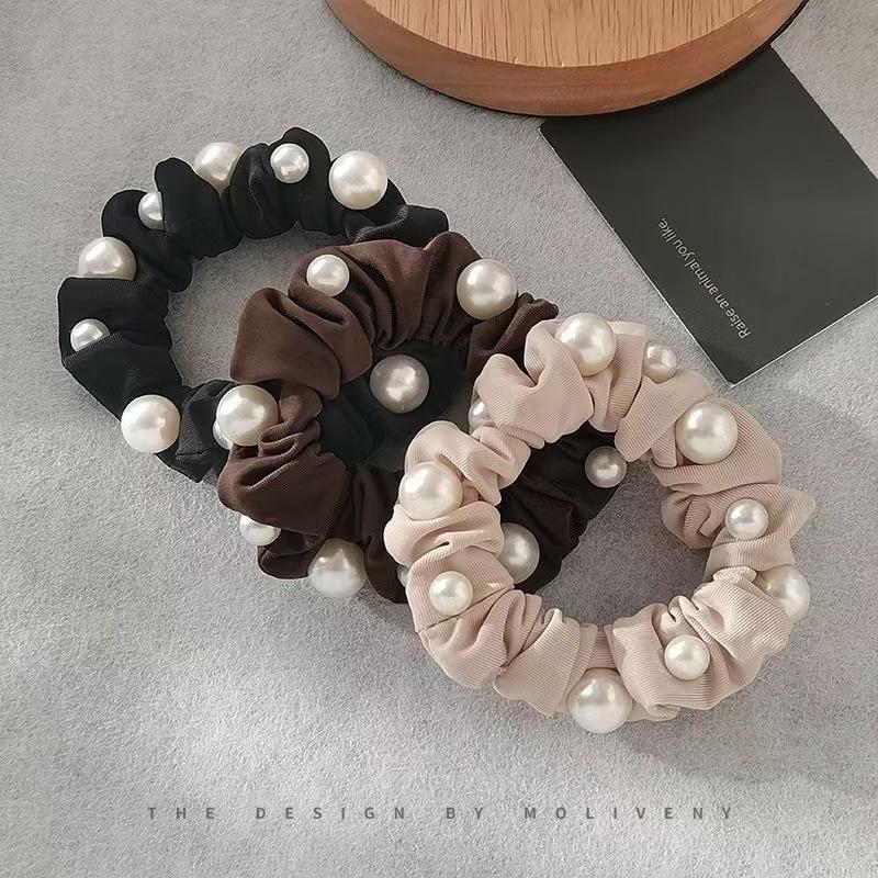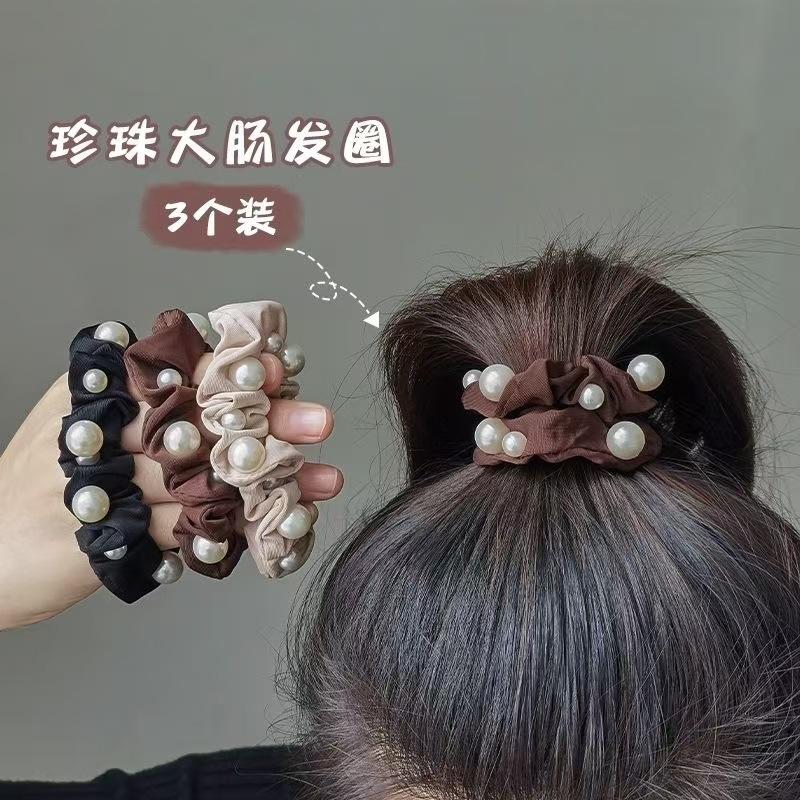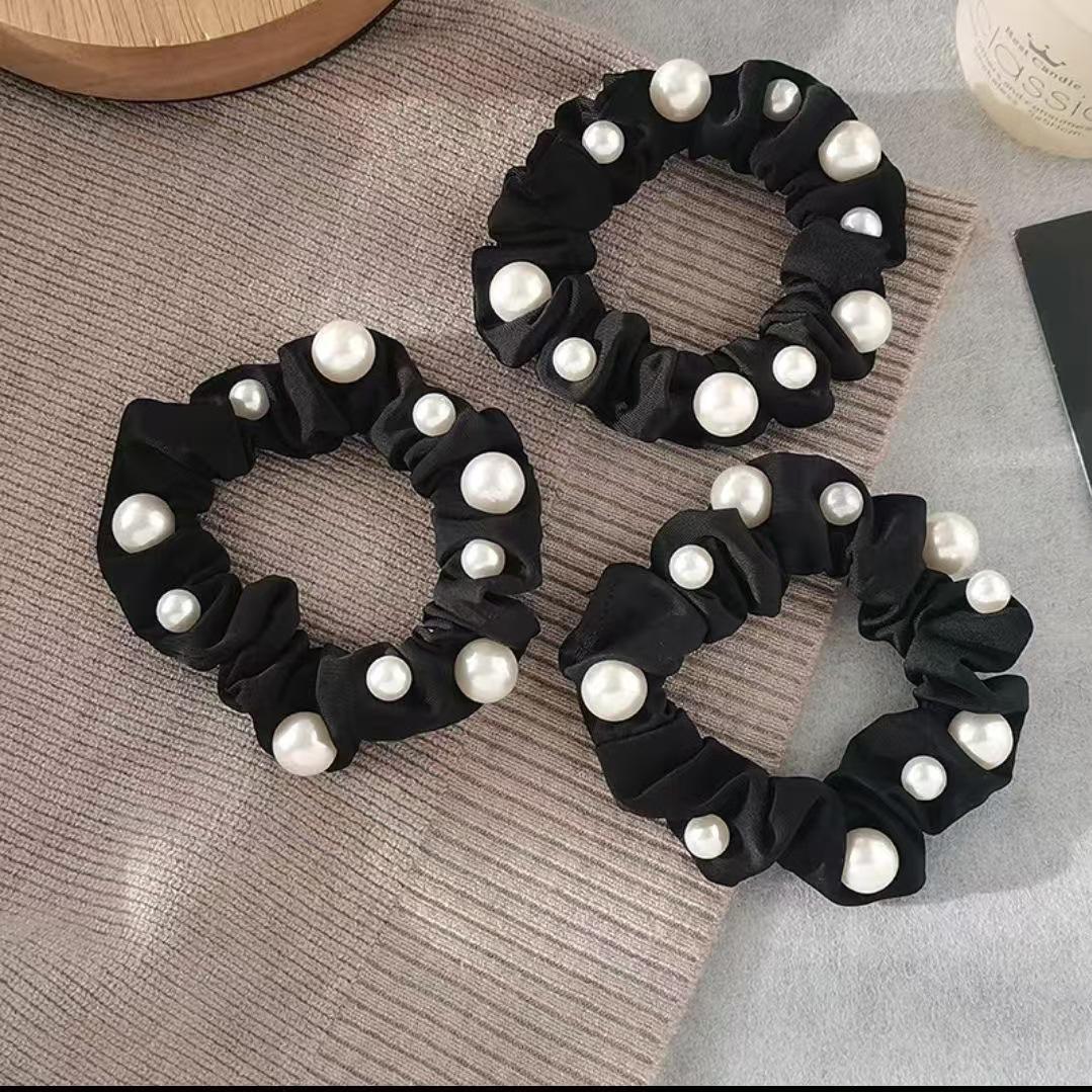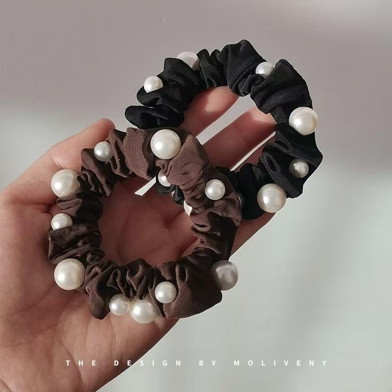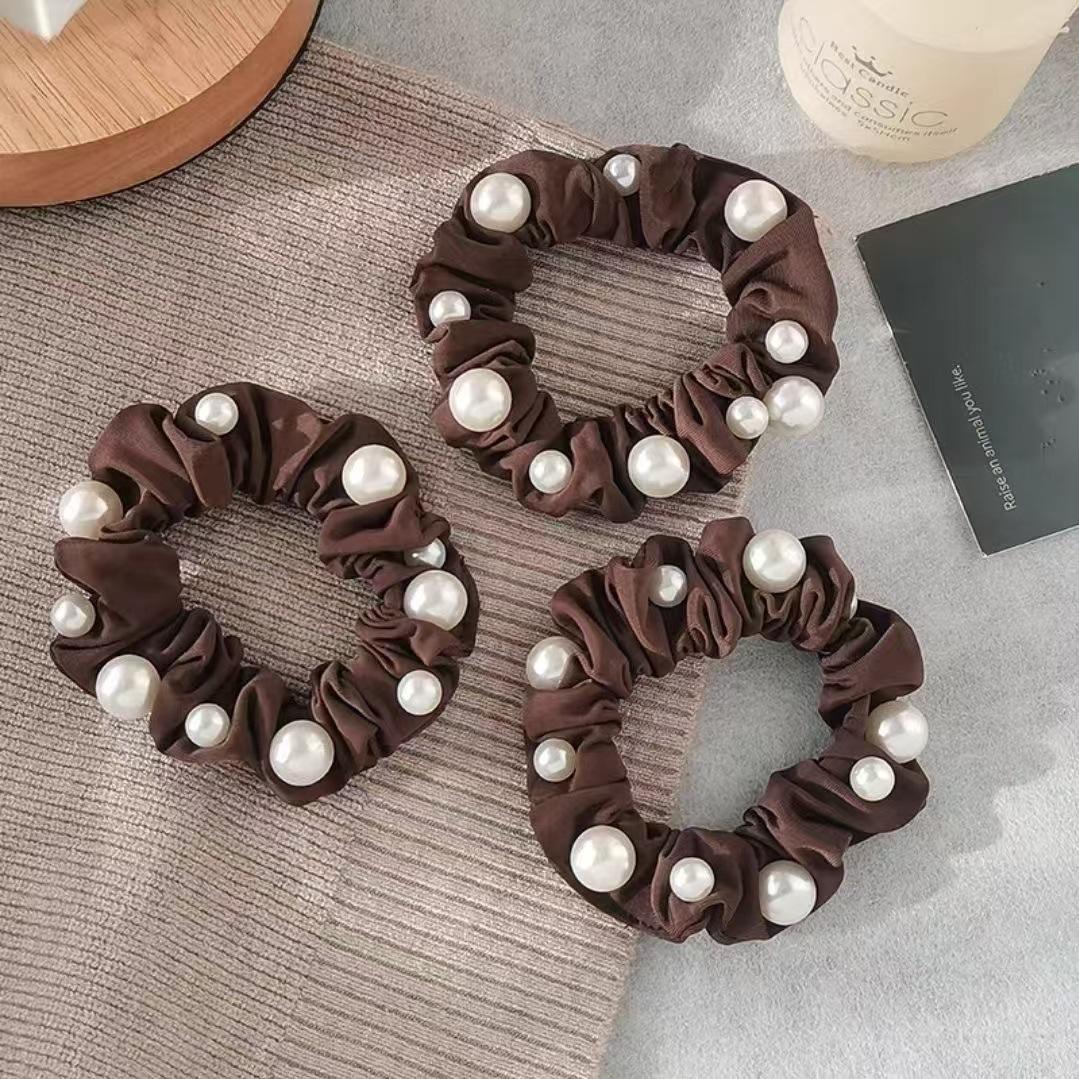 Black pearl hair tie, Brown pearl hair tie, Off-white pearl hair tie