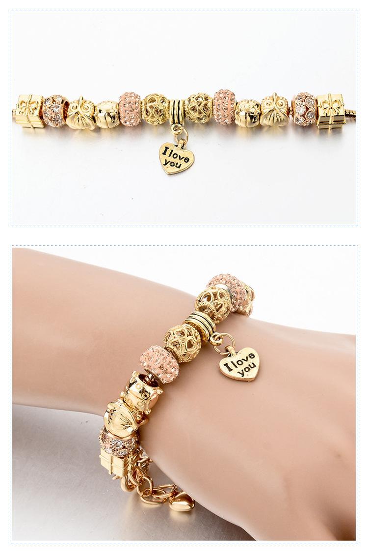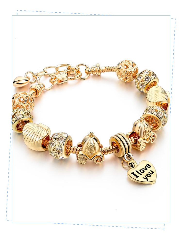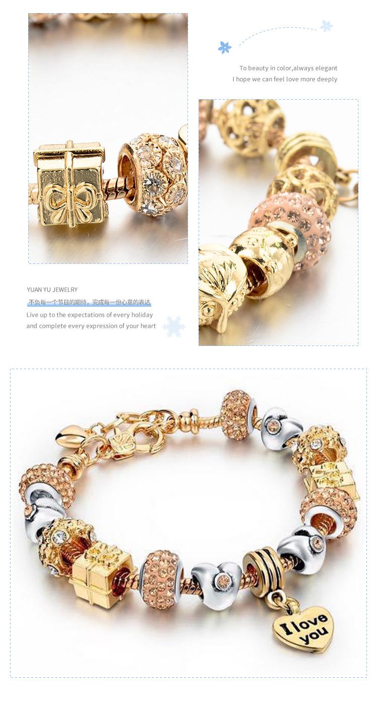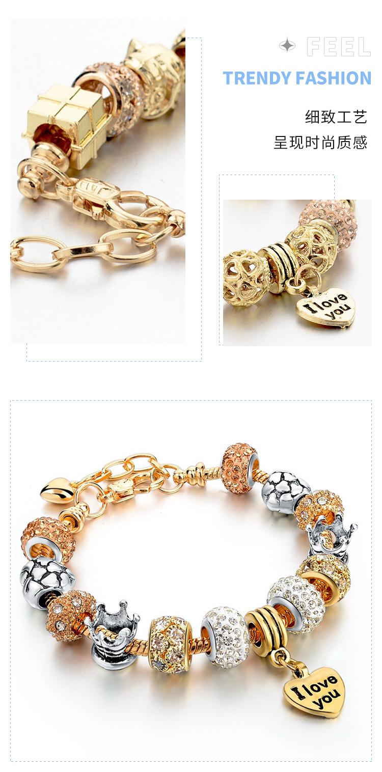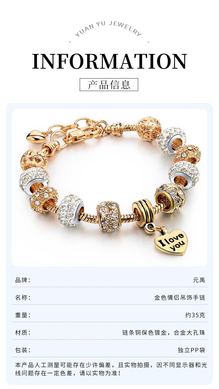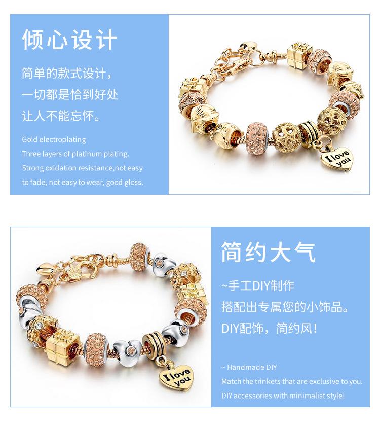 Pulsera de cuentas para damas de Panjia transfronterizas, regalo de una generación de amantes, pulsera colgante de oro "Te amo"