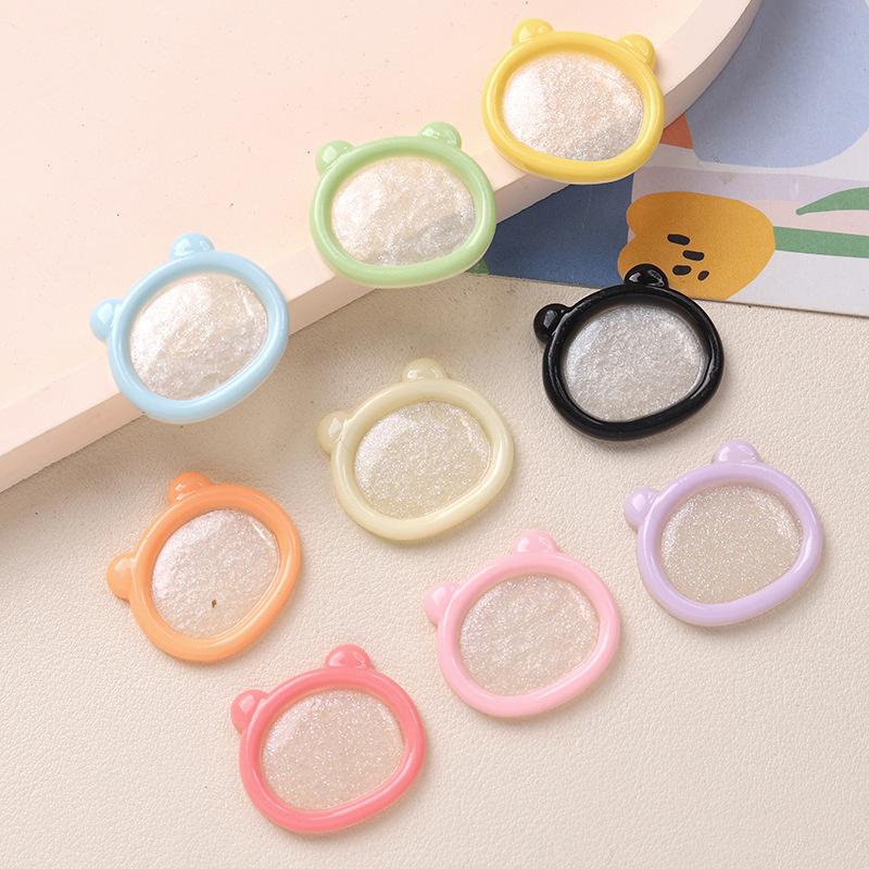 Accesorios de resina de dibujos animados para hacer tú mismo, placa de cabeza de oso con destello fino, pegamento en crema, horquilla hecha a mano, funda para teléfono móvil, hebilla para zapatos, accesorios