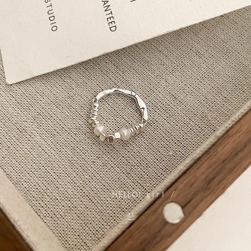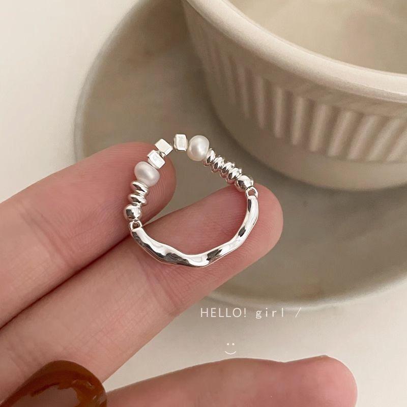 Anillo de perla de plata rota irregular para mujer, nuevo anillo de dedo con diseño de comida de 2024, ligero, de lujo y de alta gama.
