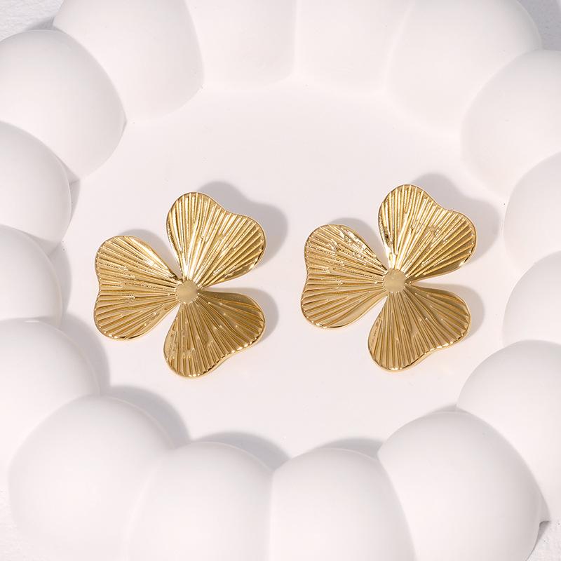 Pendientes de flores de acero inoxidable de moda transfronteriza para mujer