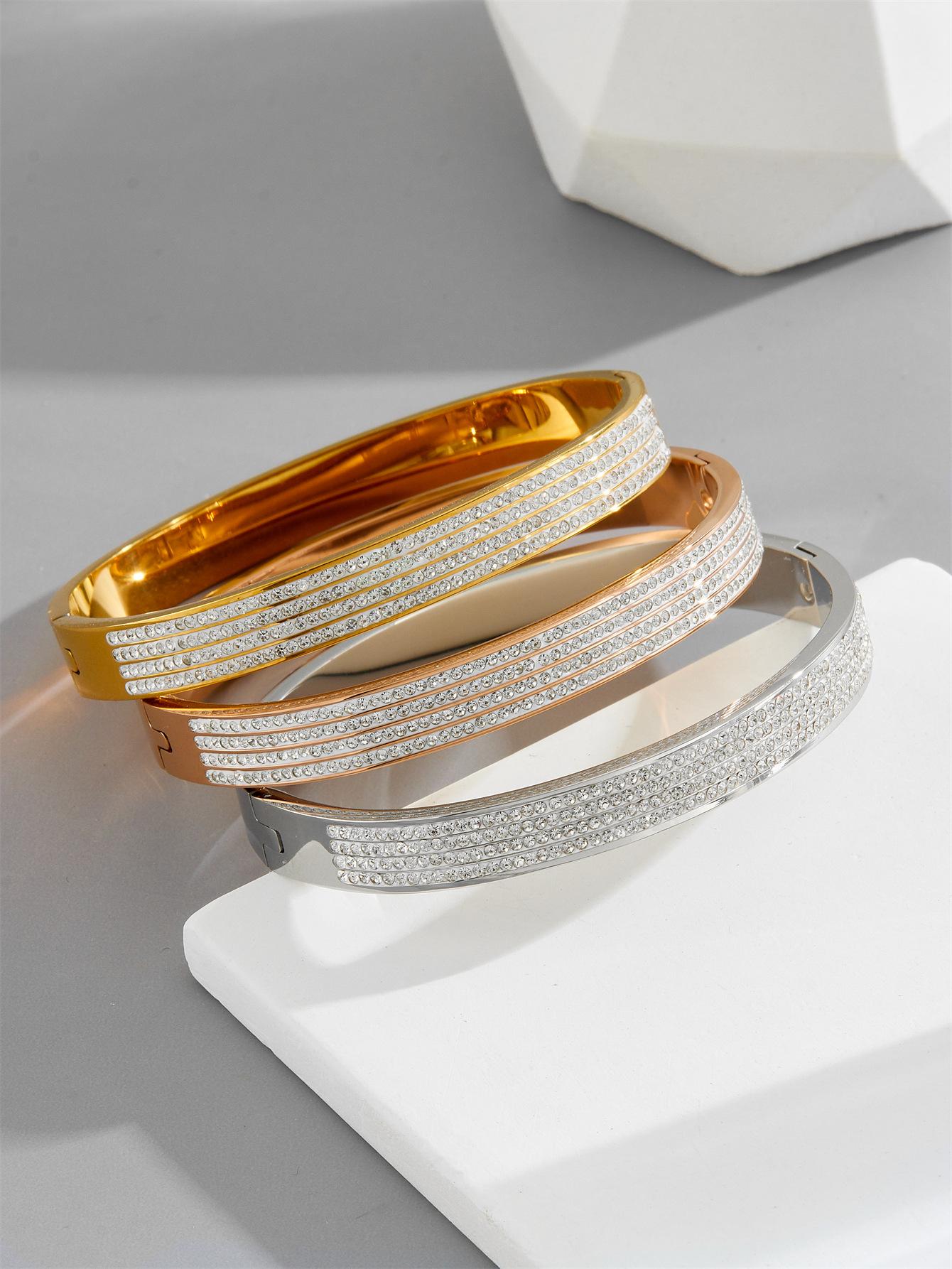 Z253 four rows of diamonds gold, Z253 four rows of diamonds rose gold, Z253 four rows of diamonds steel color