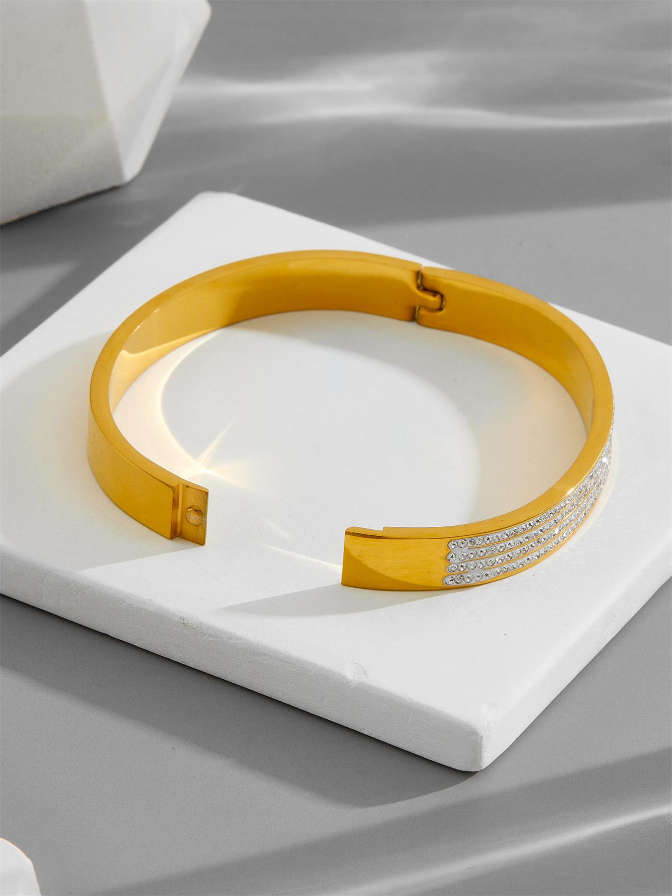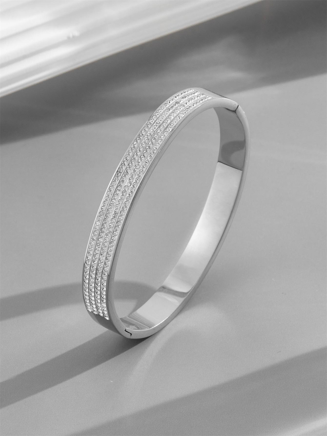 Moda Europea y Americana Lujo Ligero Micro Incrustado con Diamantes Pulsera de Acero de Titanio para Mujer Estilo Coreano Simple Nicho Color Libre Hebilla Pulsera Joyería