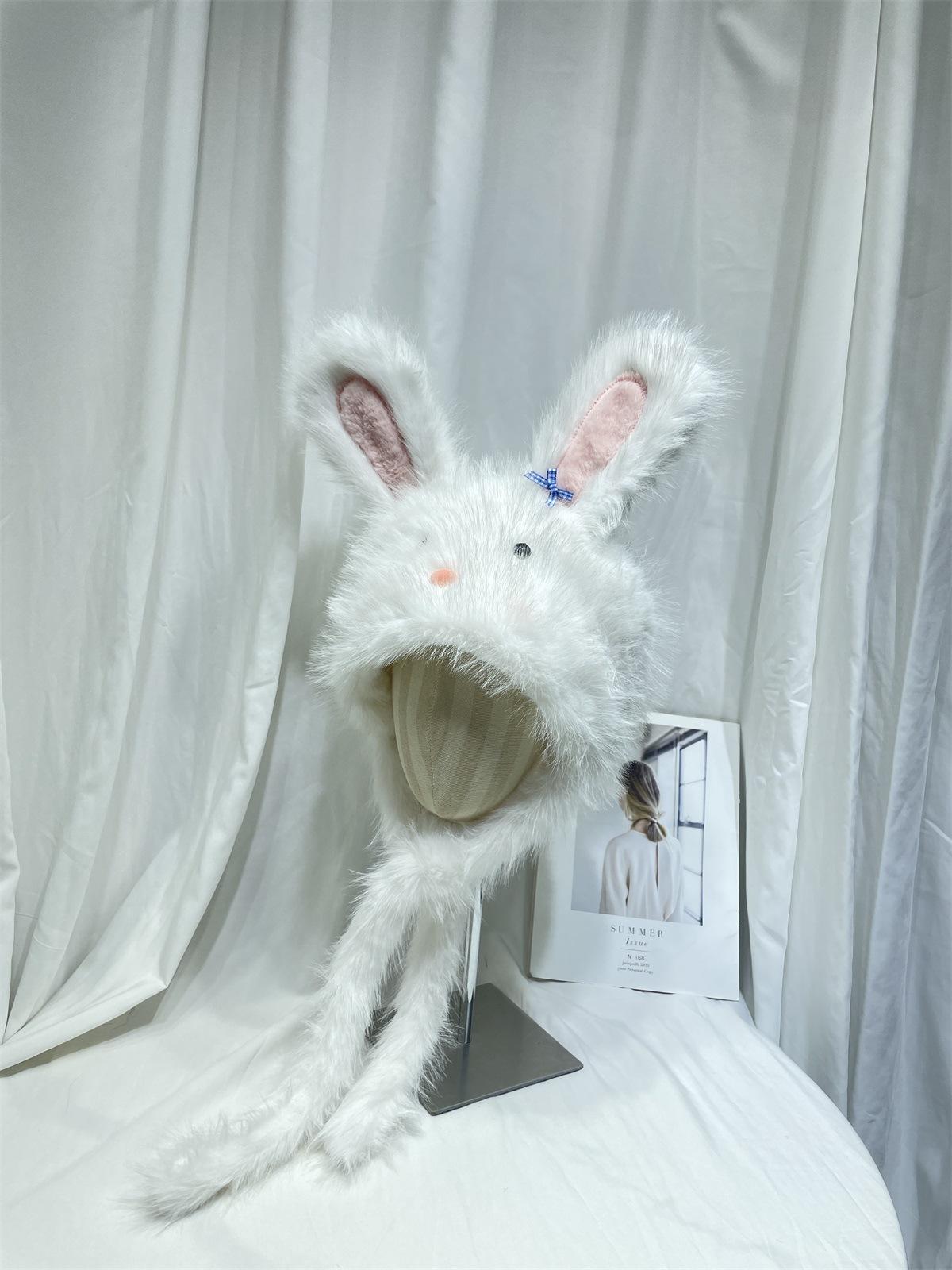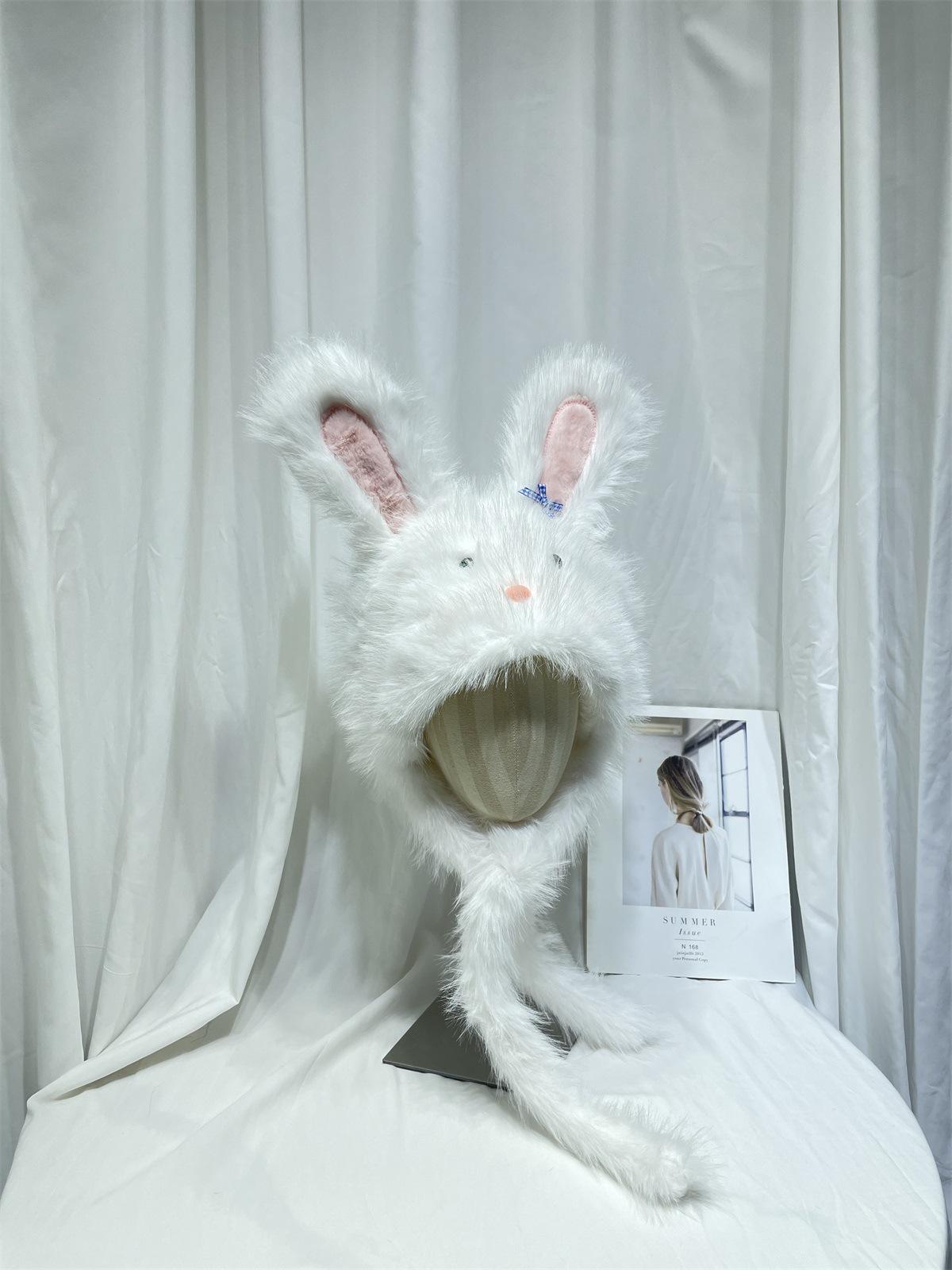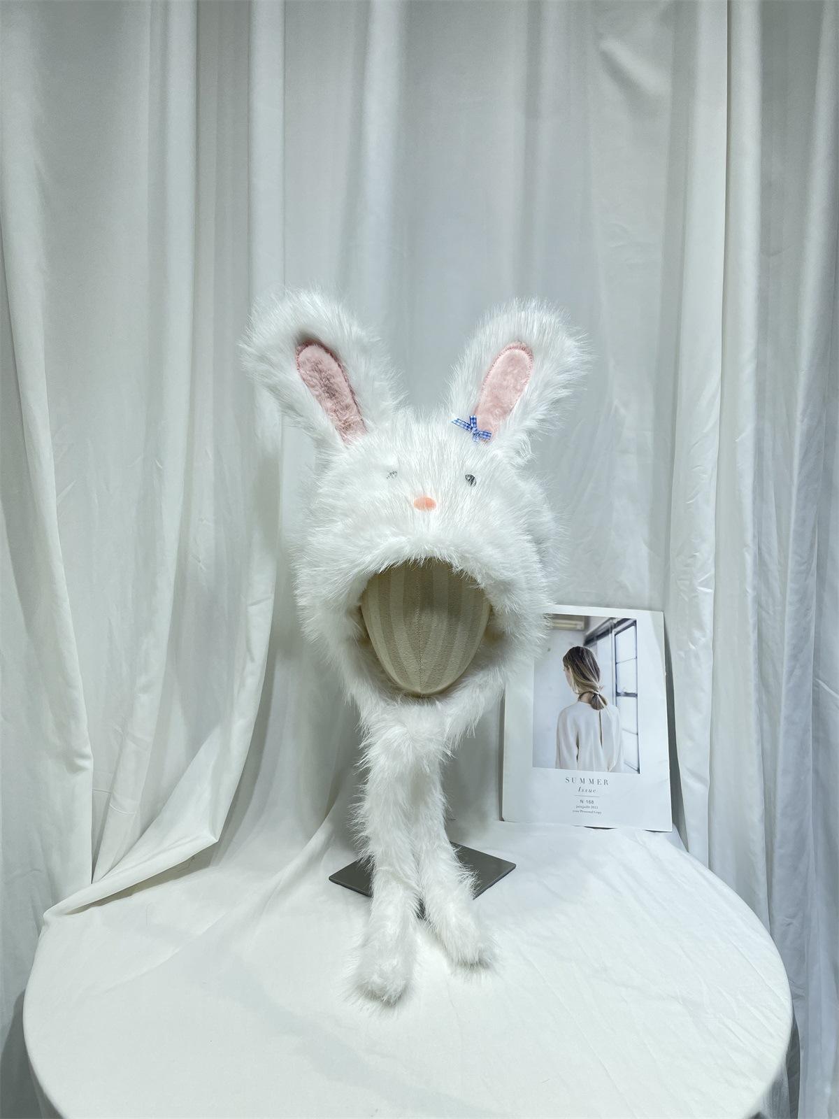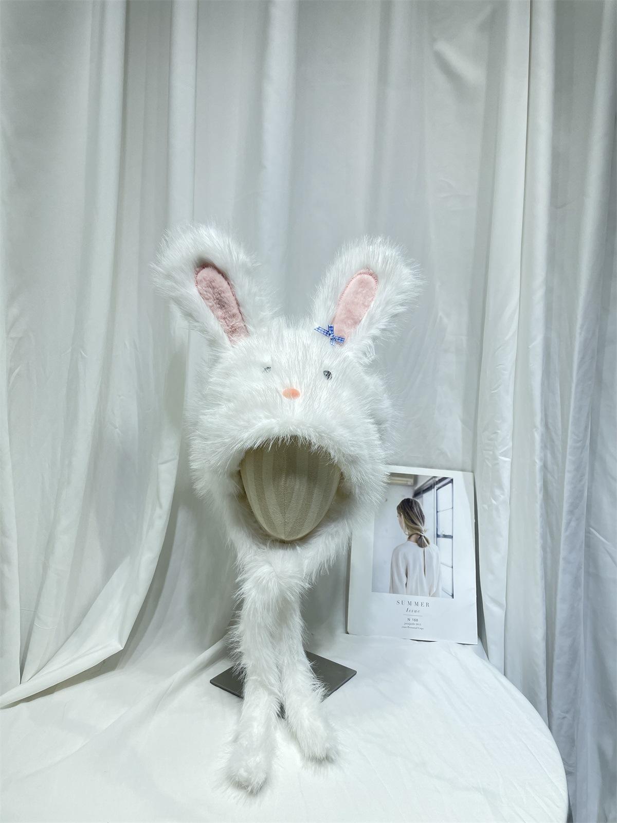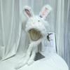 Gorro esponjoso con orejas de conejo de estilo japonés para mujer, cálido gorro Lei Feng de invierno con protección para las orejas, forro polar grueso y resistente al viento.