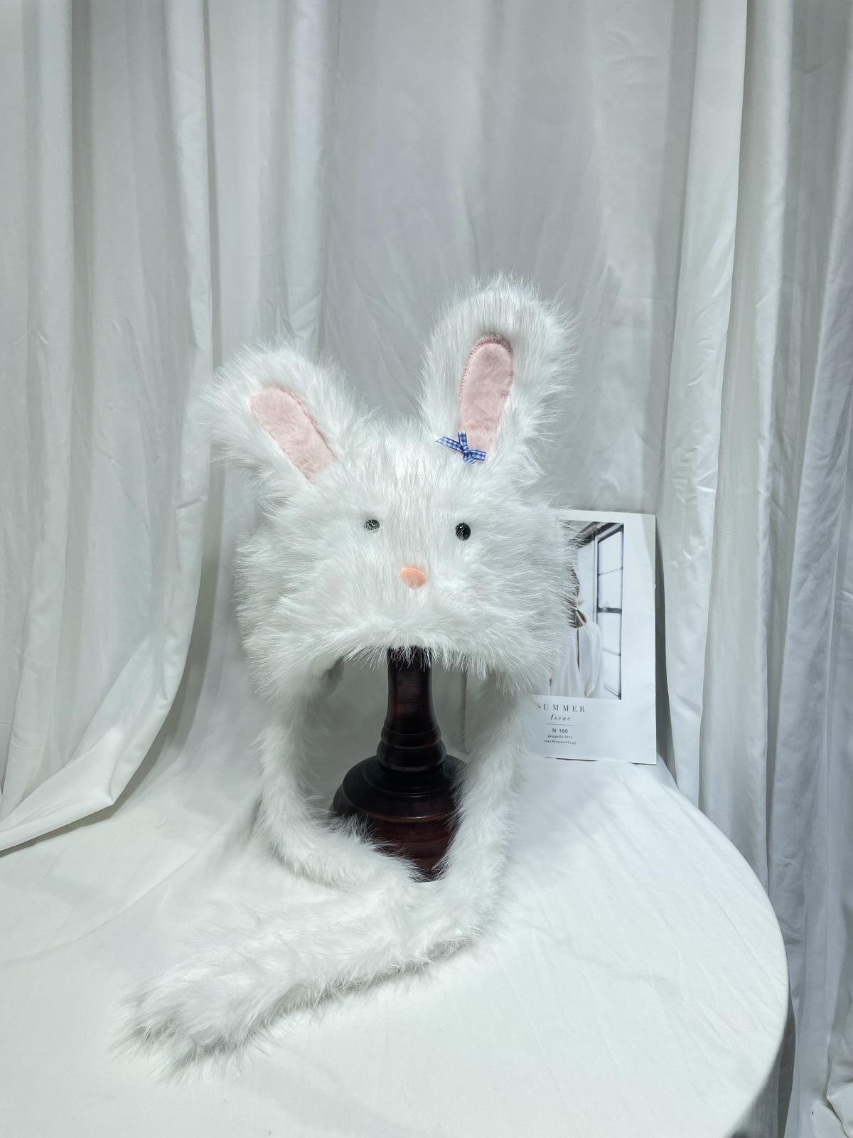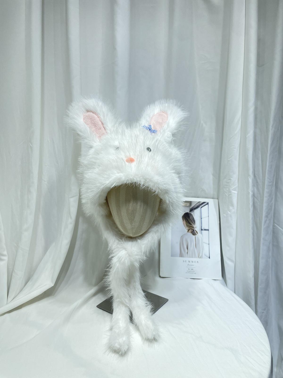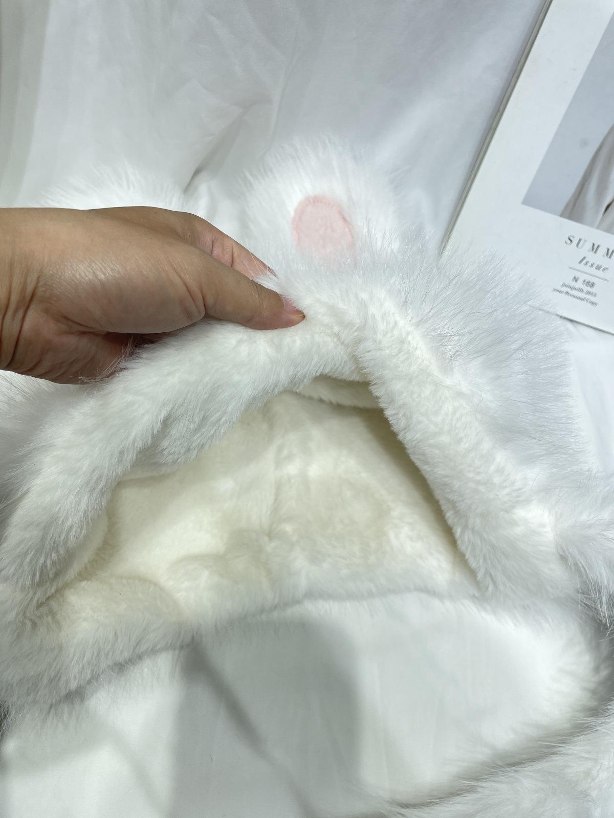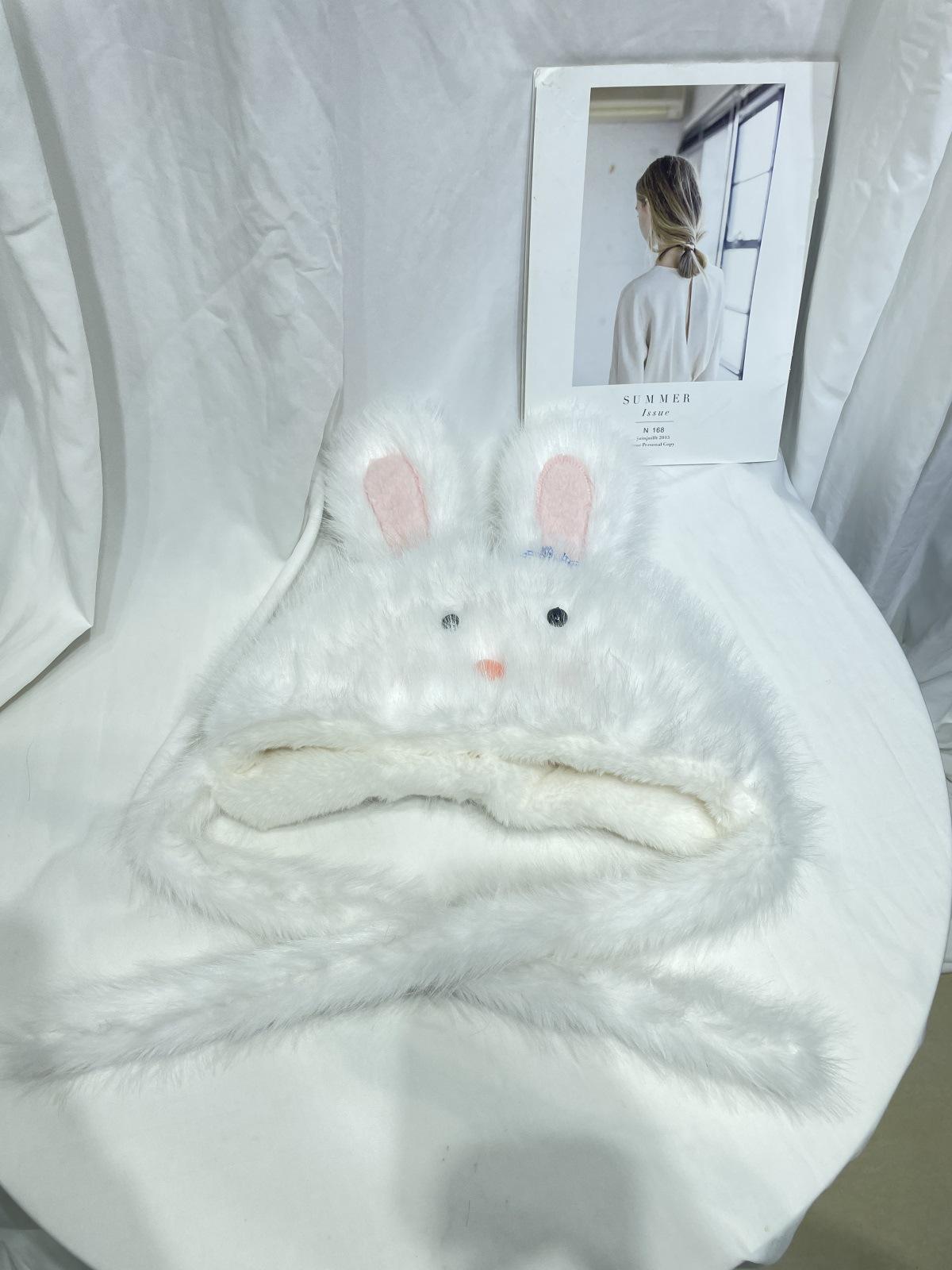 Gorro esponjoso con orejas de conejo de estilo japonés para mujer, cálido gorro Lei Feng de invierno con protección para las orejas, forro polar grueso y resistente al viento.