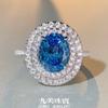 Anillo de circonita ovalada de 7 x 9 con zafiro artificial clásico europeo y americano de Mujing Jewelry, modelo de venta caliente de comercio exterior de comercio electrónico transfronterizo