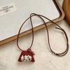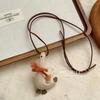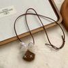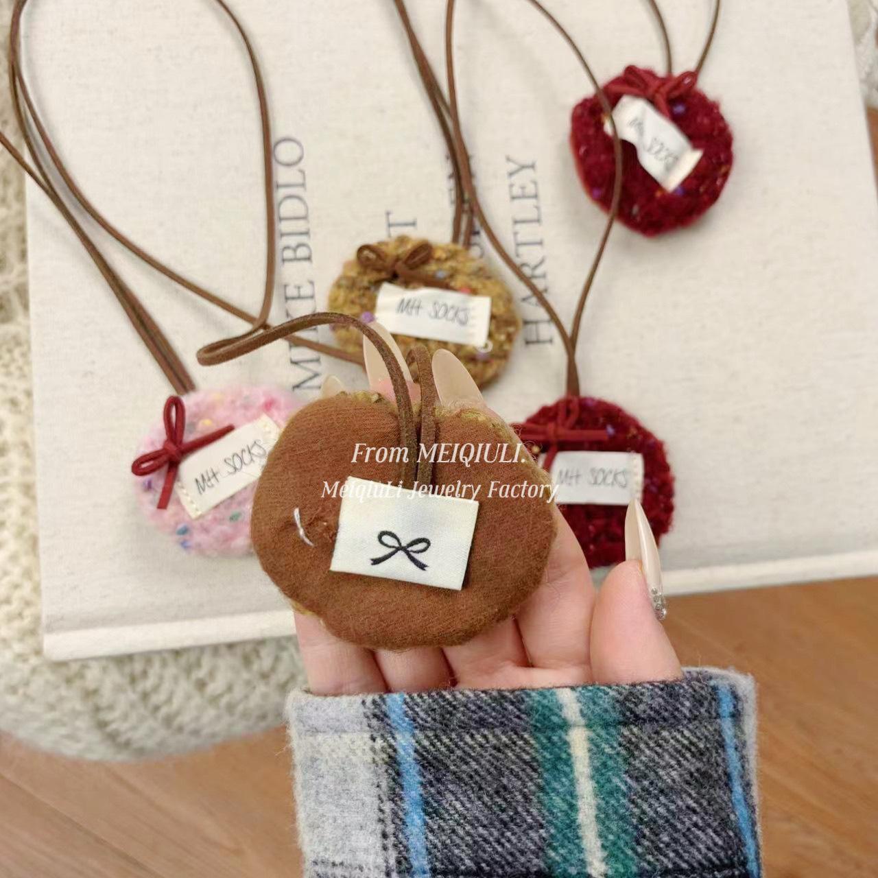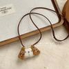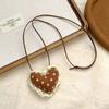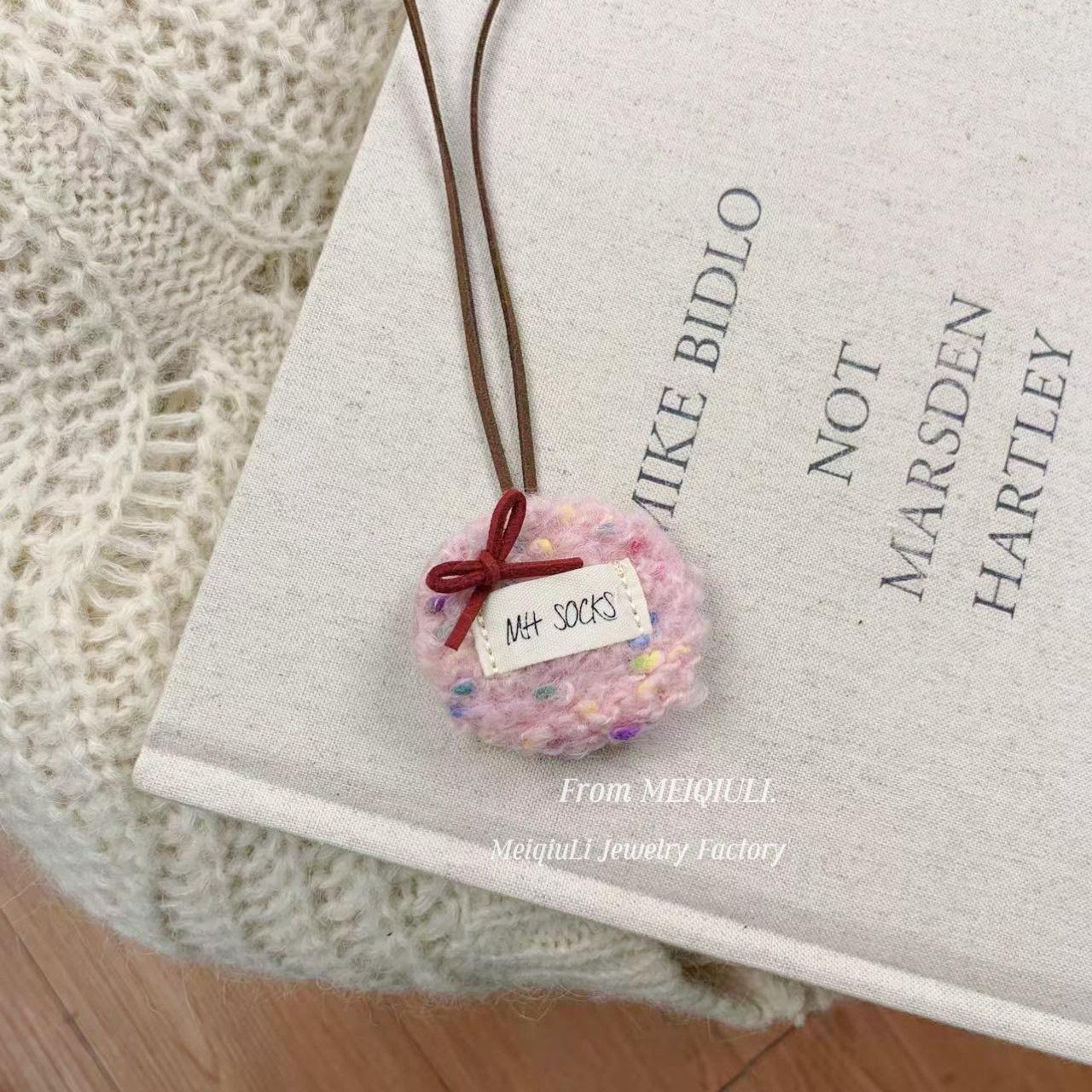 Pink bows dotted plush biscuit fabric leather necklace, Brown bows dotted plush biscuit fabric leather necklac...