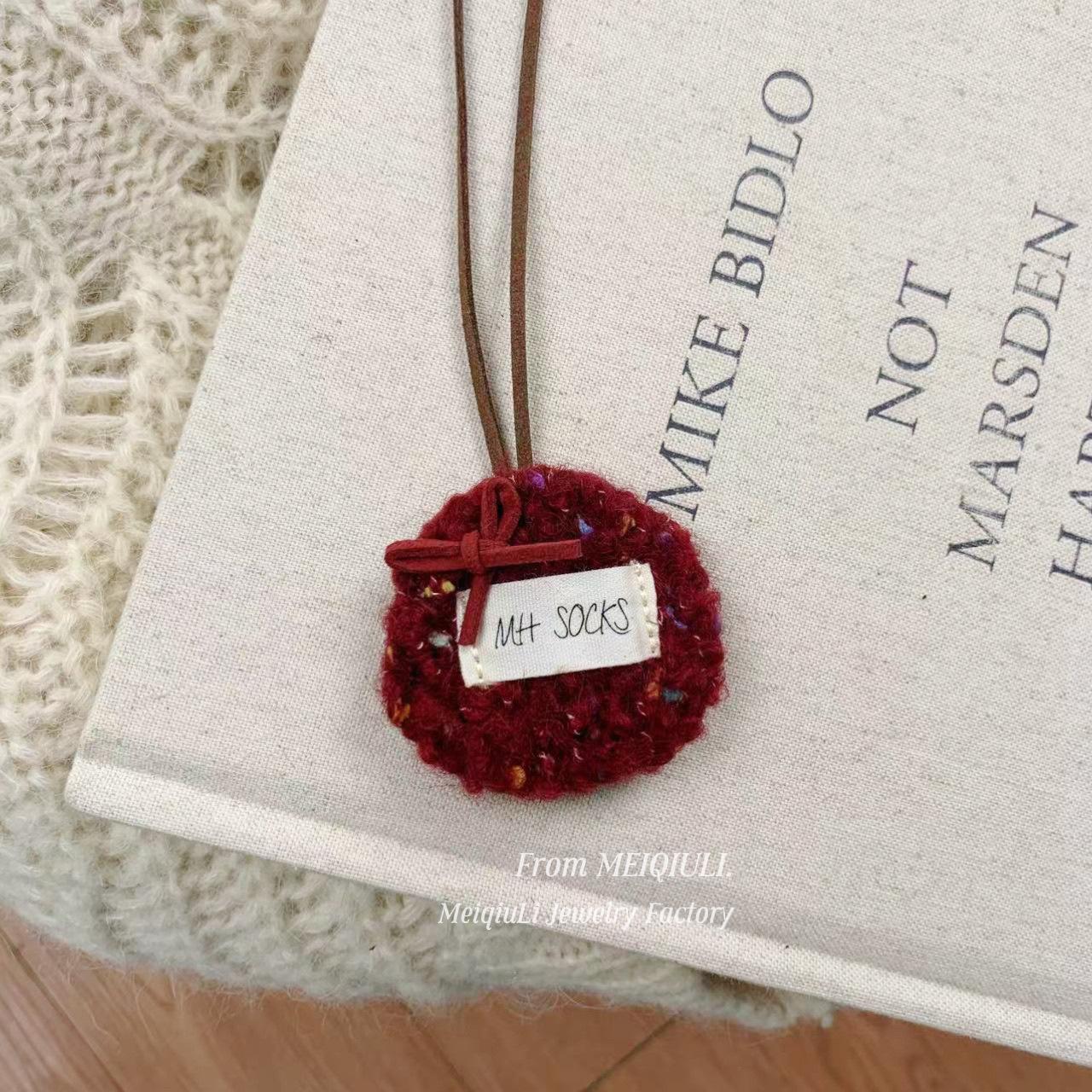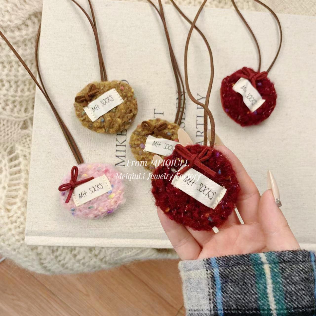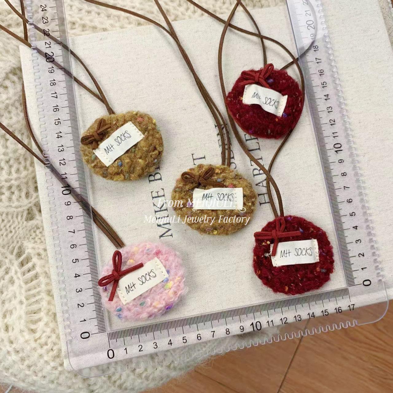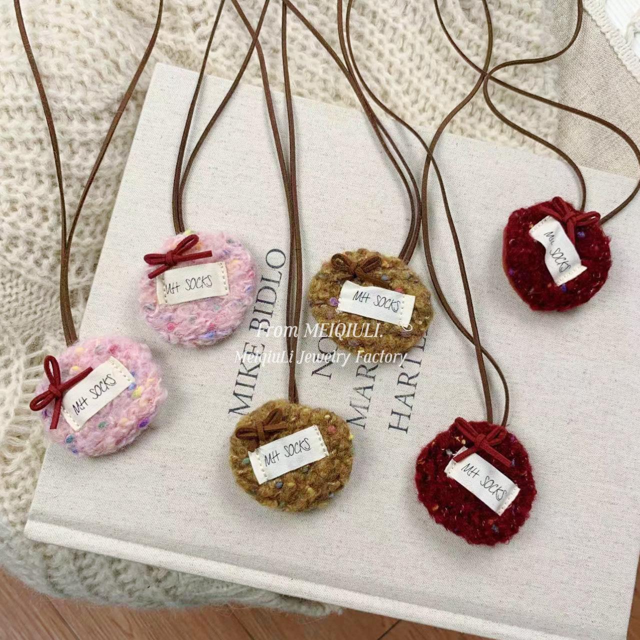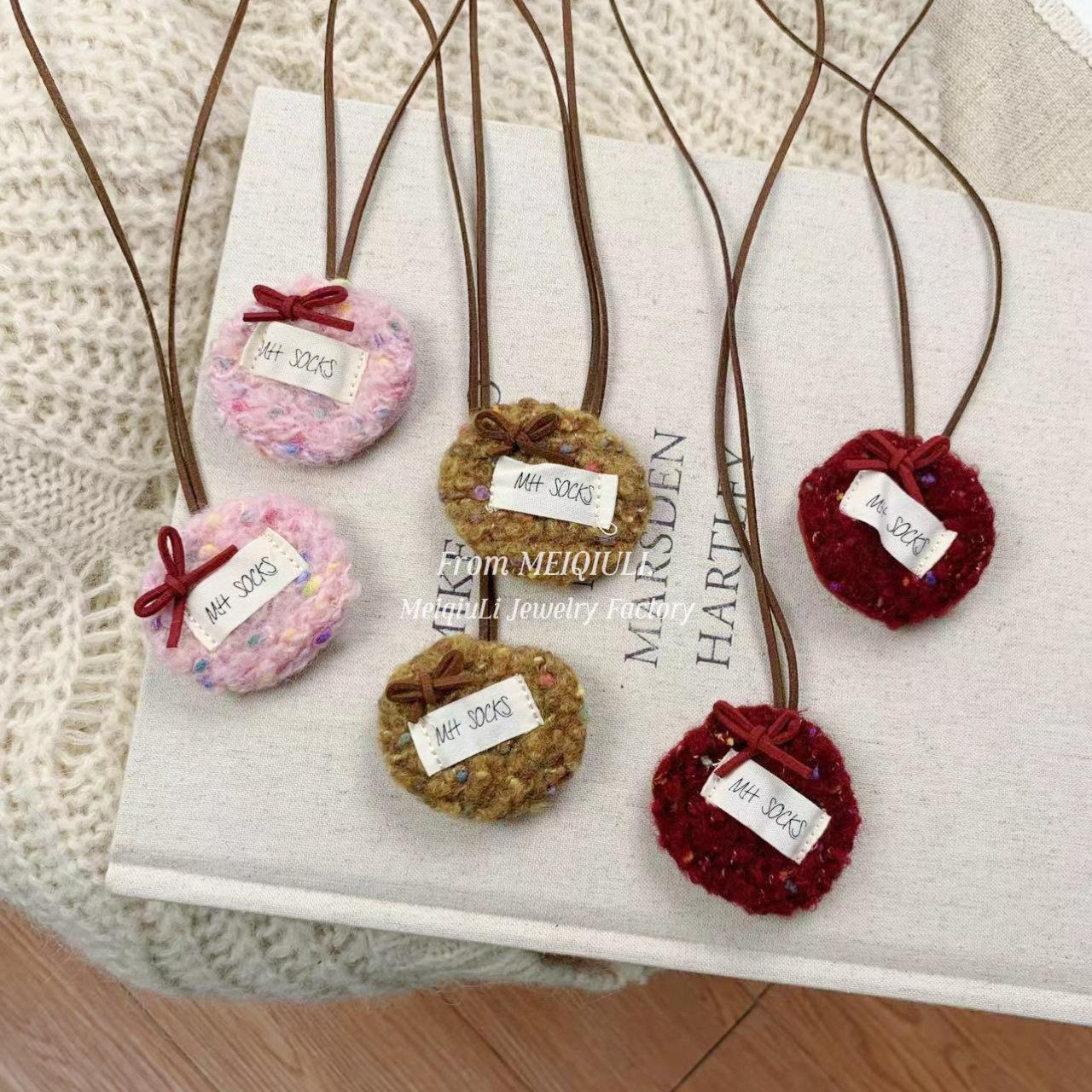 Corea del Sur Nuevo Color Carta Lana Tejida Cuero Sintético Collar para Niños Otoño e Invierno Dulce Lindo Accesorios de Collar Mujeres