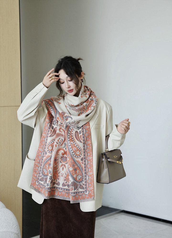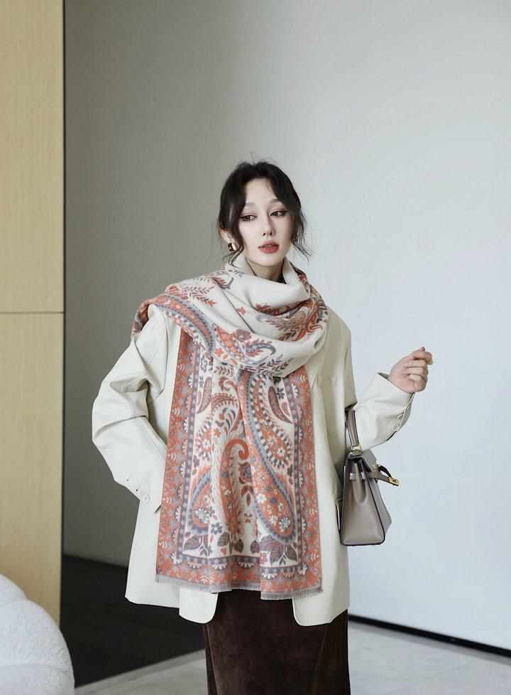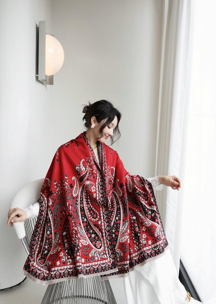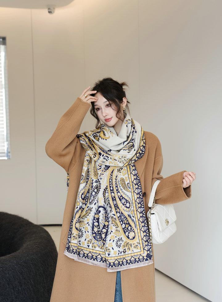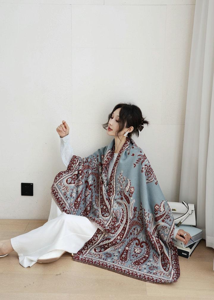 Chal de mujer para otoño e invierno, nuevo, de imitación de cachemira y flor de anacardo, bufanda de mujer estilo coreano con borlas largas de doble cara y doble uso.