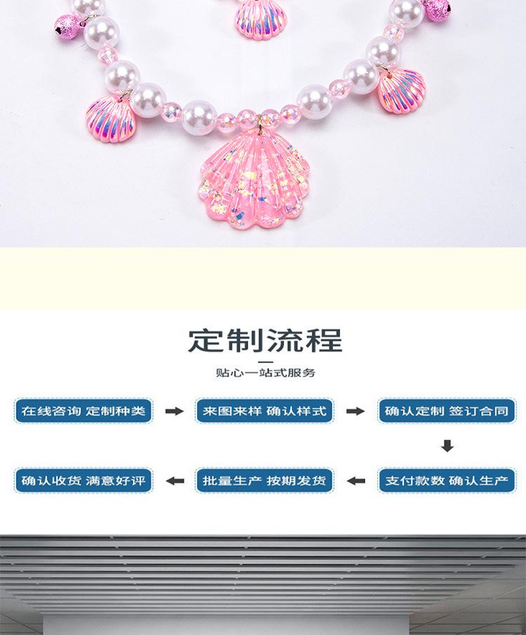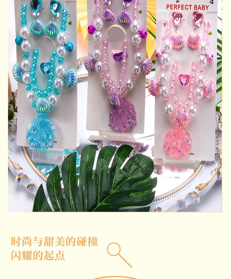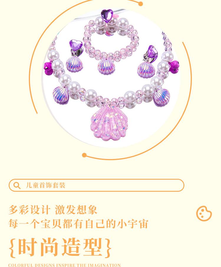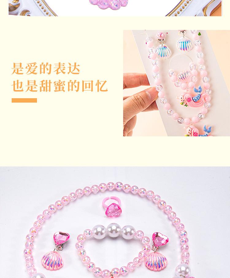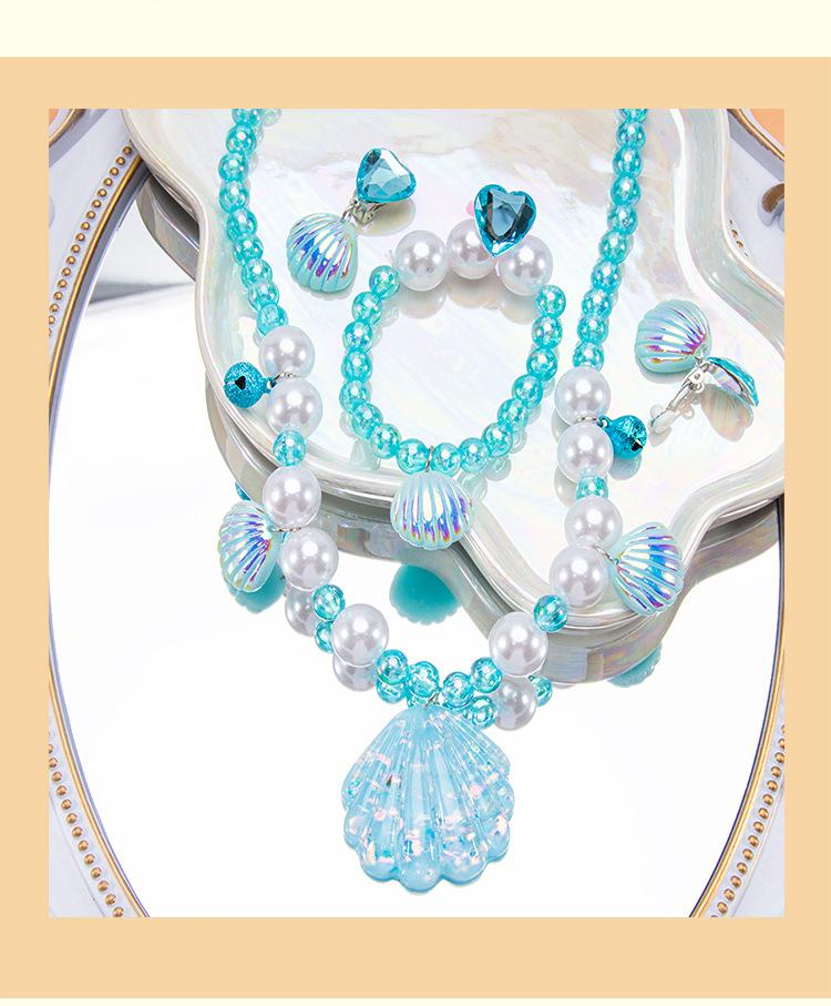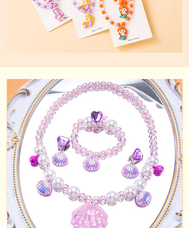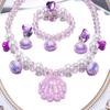 Collar de perlas hecho a mano con dibujos animados para niños, pulsera, anillo, concha grande transparente, traje de princesa sirena