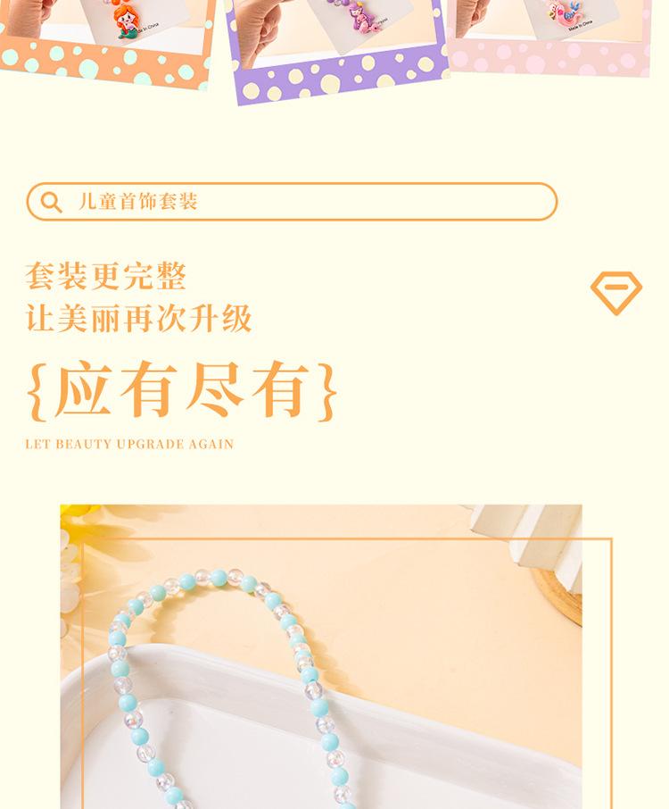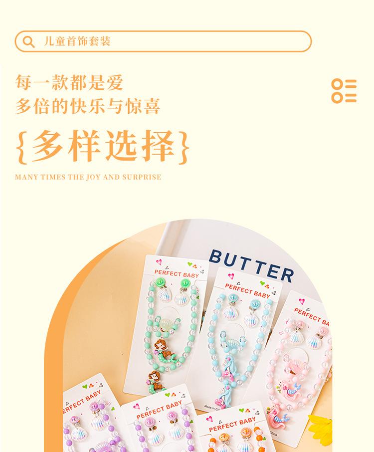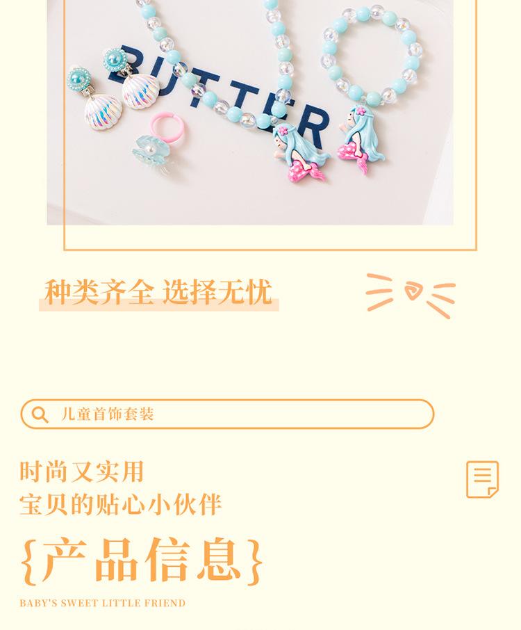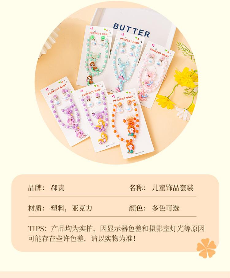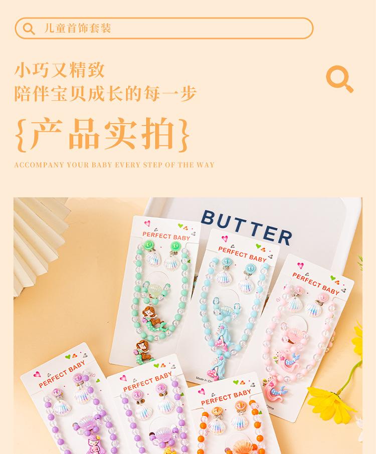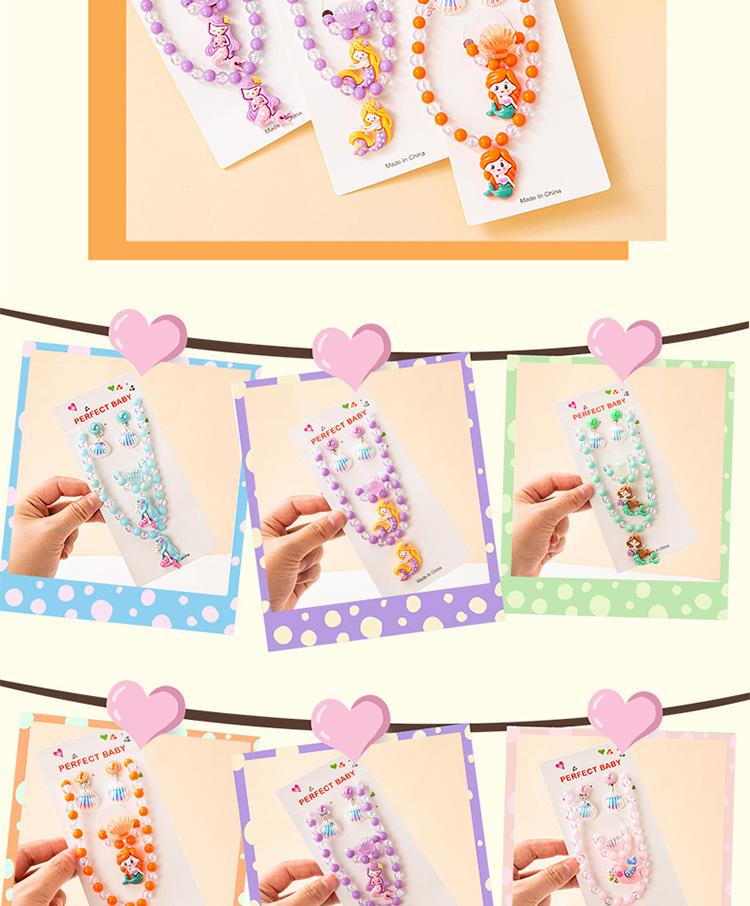 Collar de perlas hecho a mano con dibujos animados para niños, pulsera, anillo, concha grande transparente, traje de princesa sirena