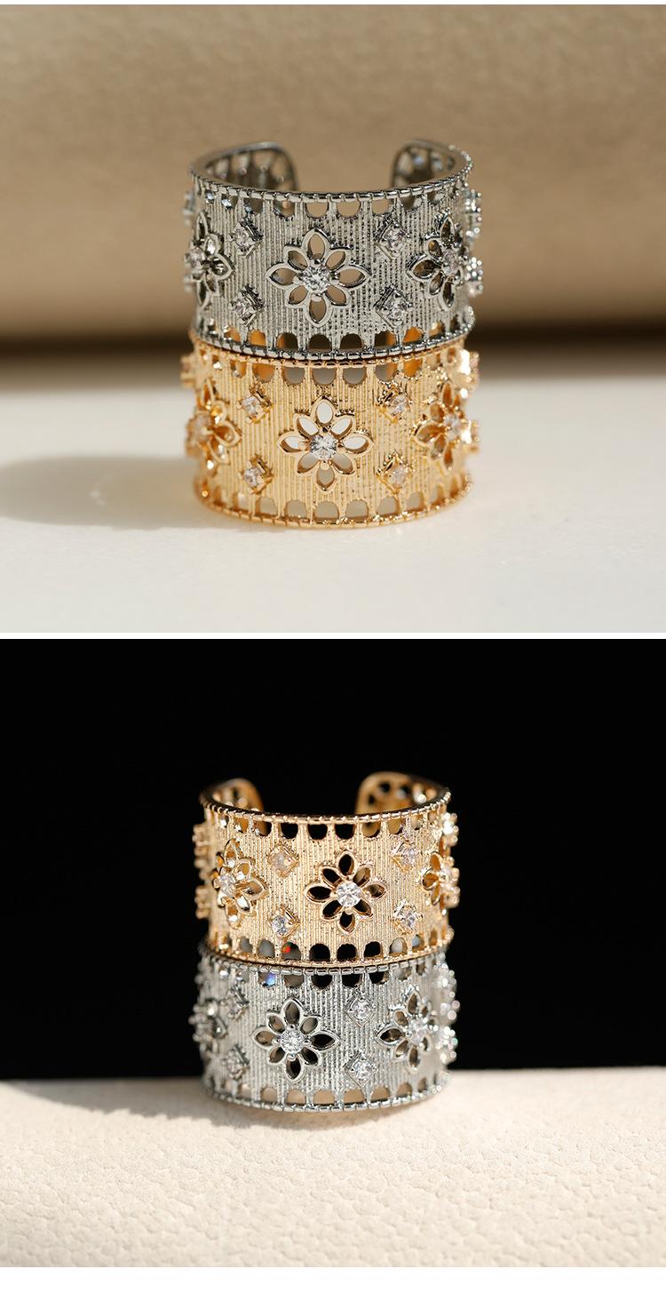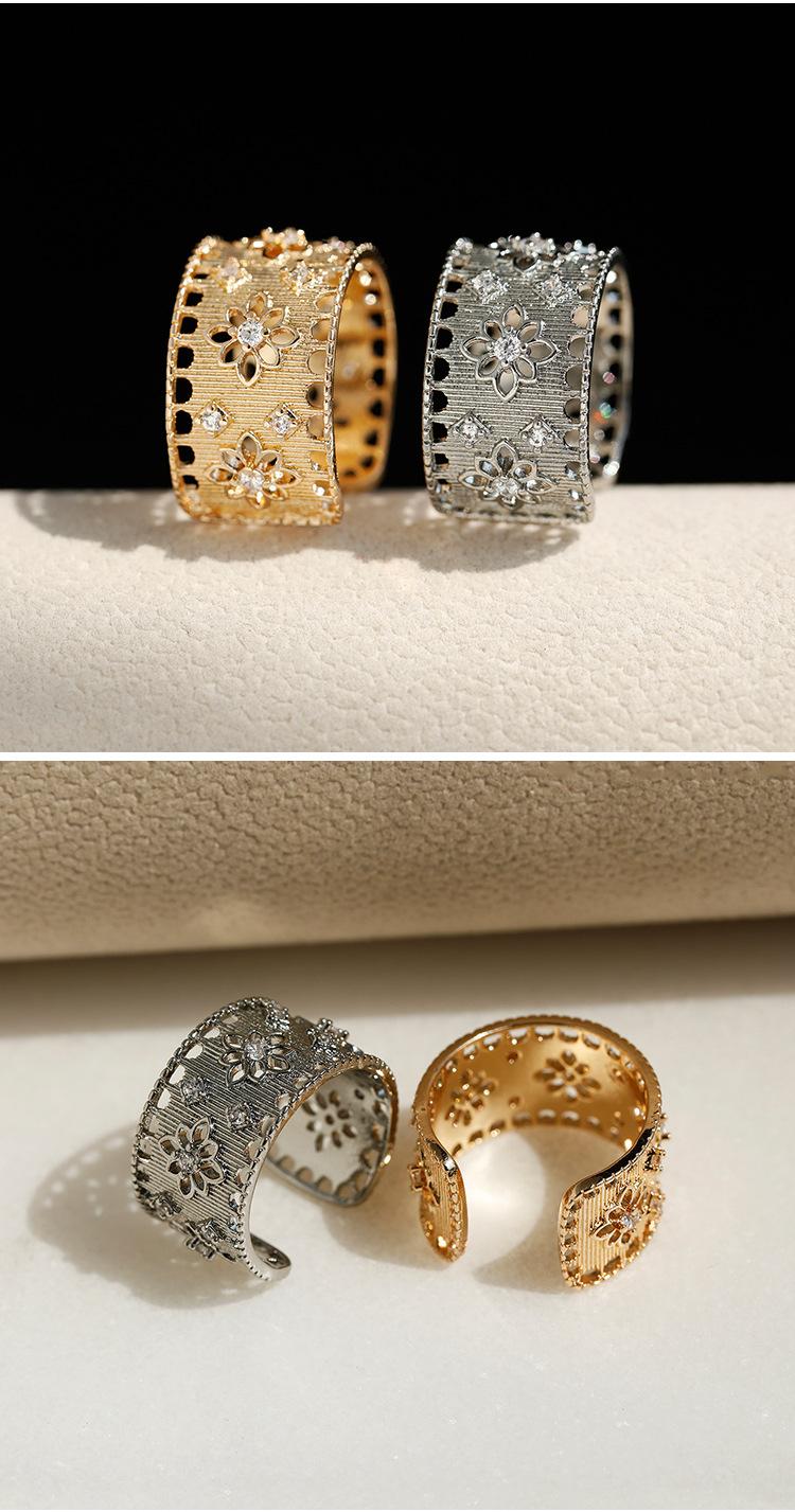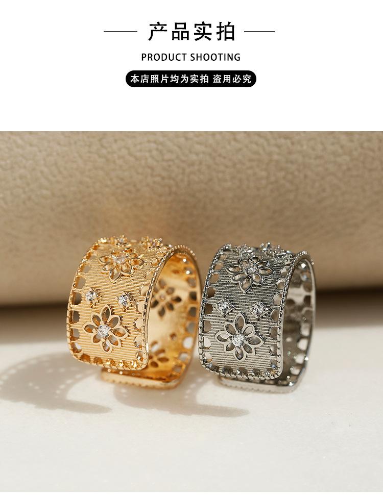 Nuevo Anillo de Latón Hueco de Moda para Mujer Anillo Ajustable con Zirconia Incrustada Joyería de Mano Joyería Moderna y Exquisita
