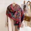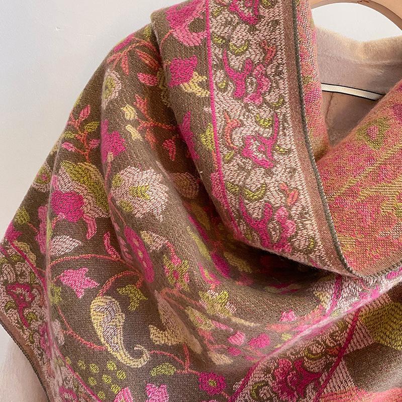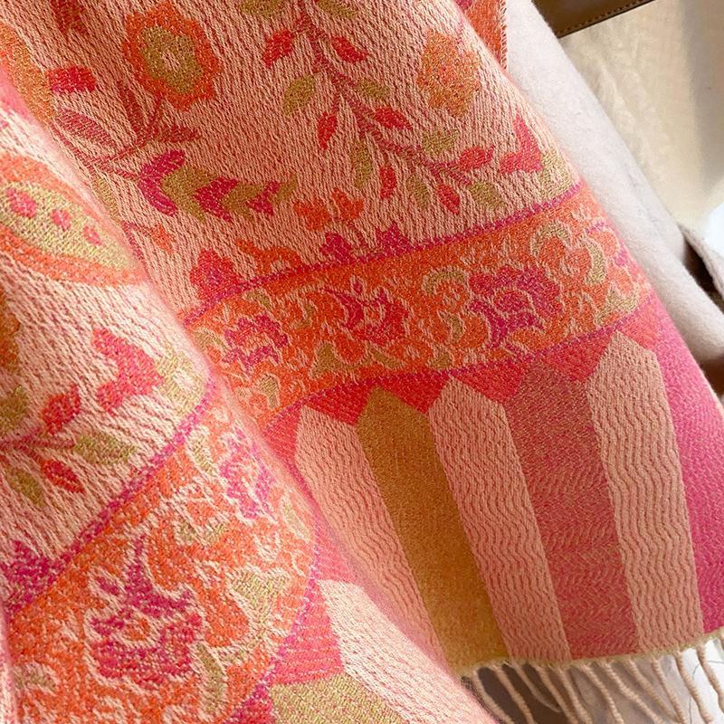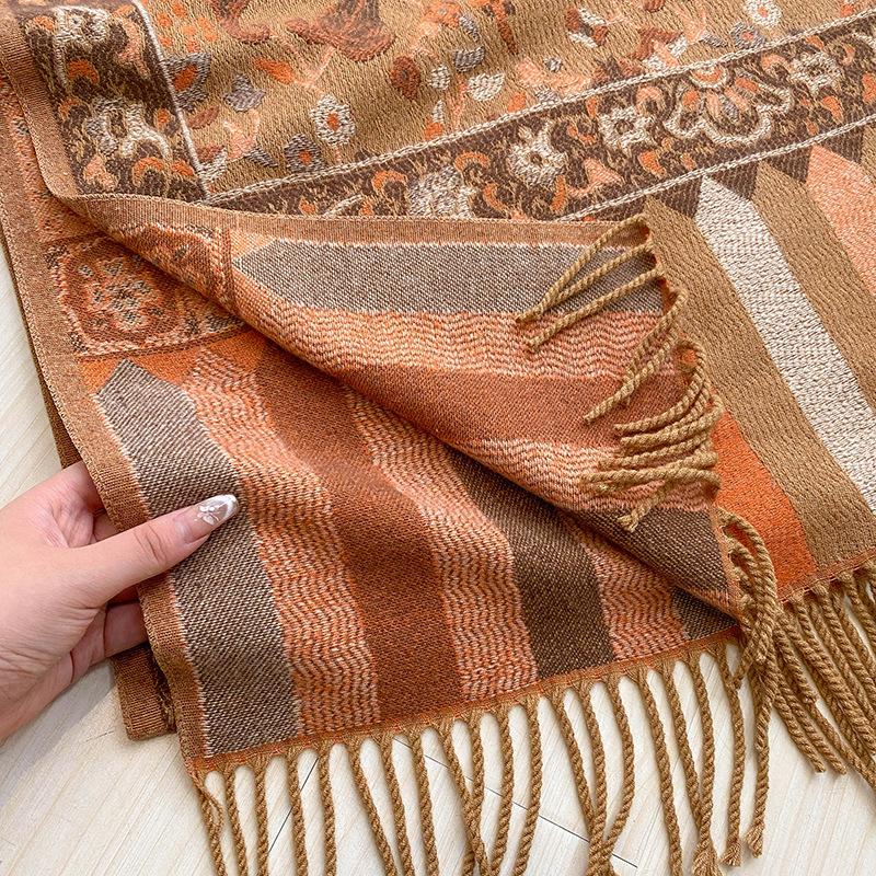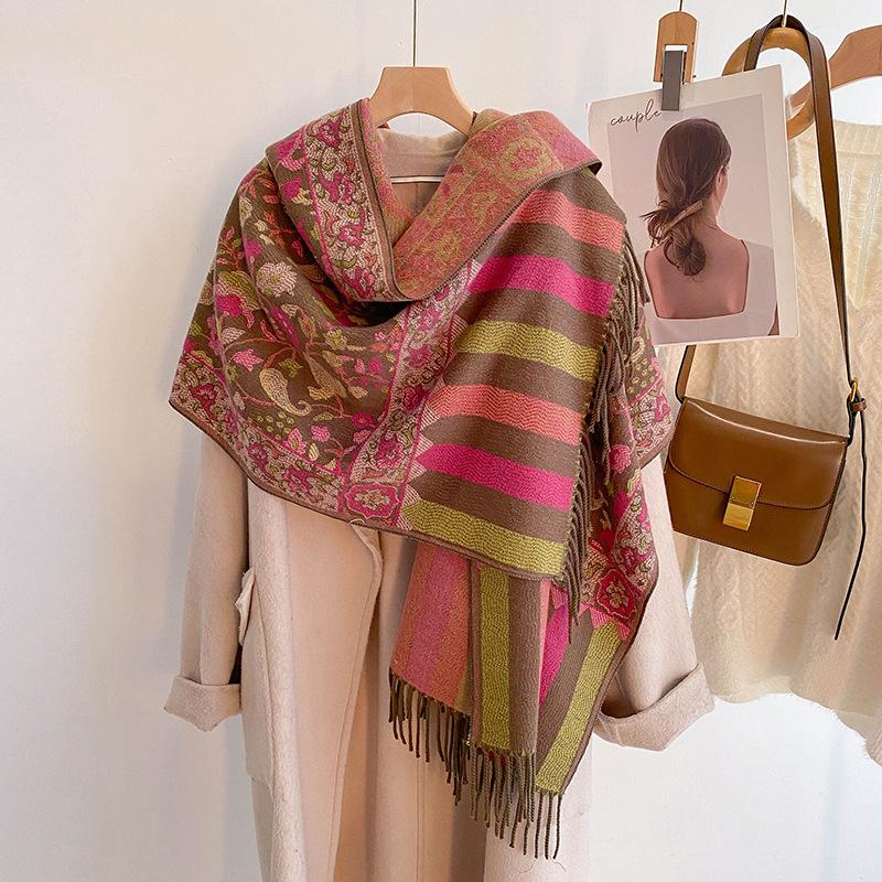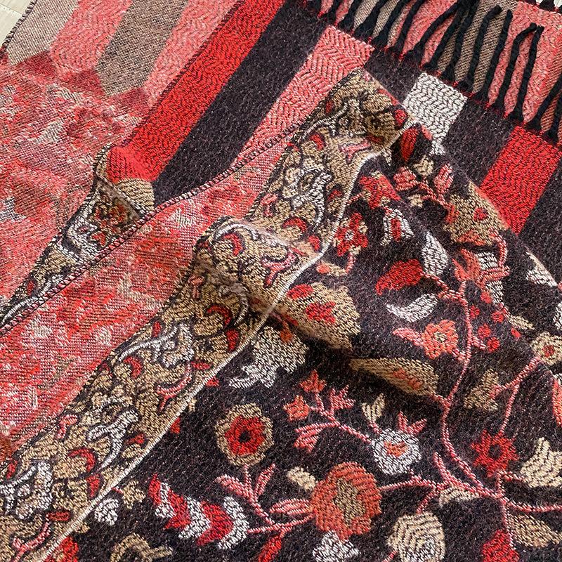 Chal Étnico Pequeño Floral con Borlas para Mujer Otoño e Invierno Hilo de Núcleo Hilado Bufanda Cálida Engrosada Imitación Cachemira Bufanda de Viaje