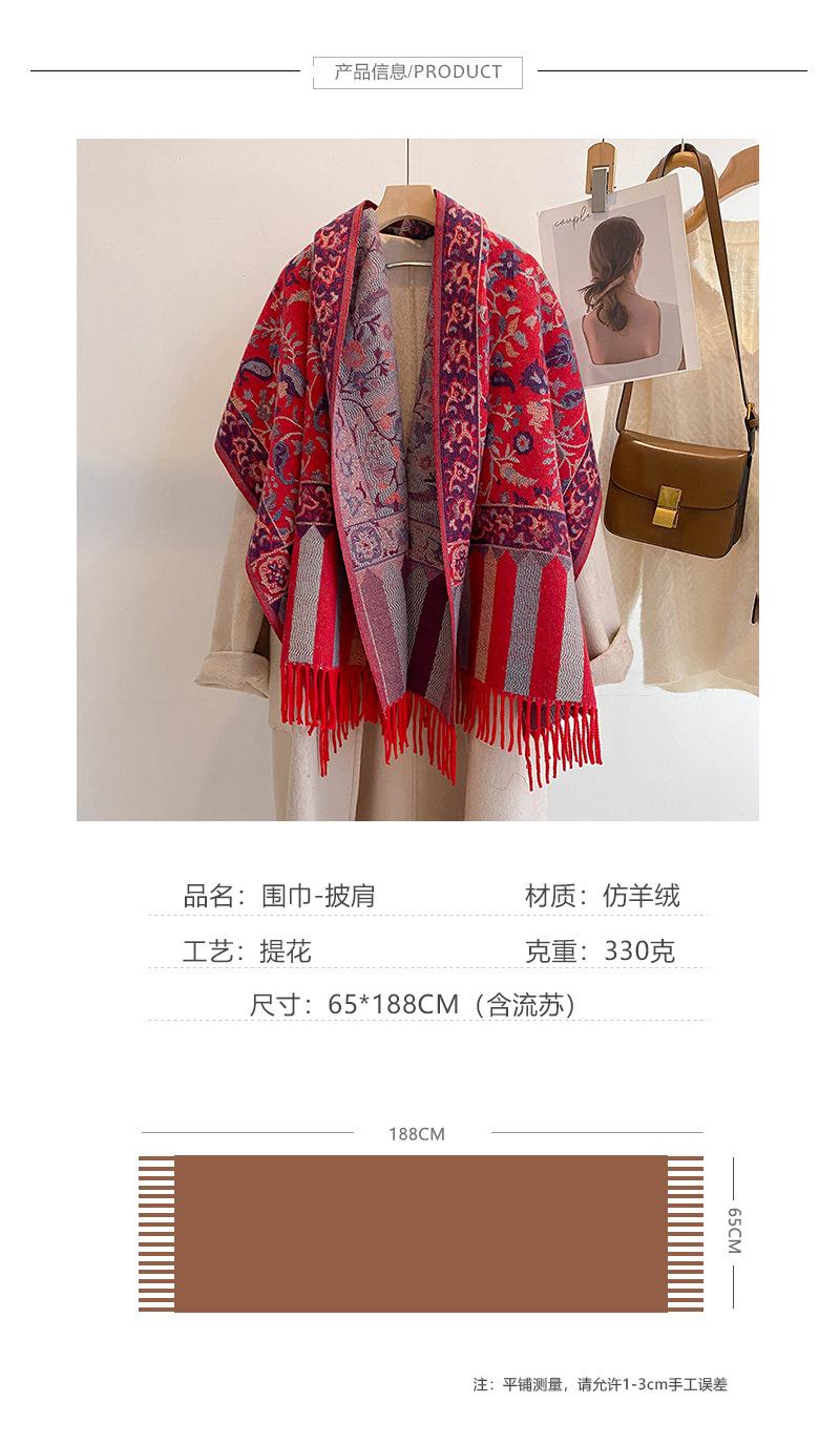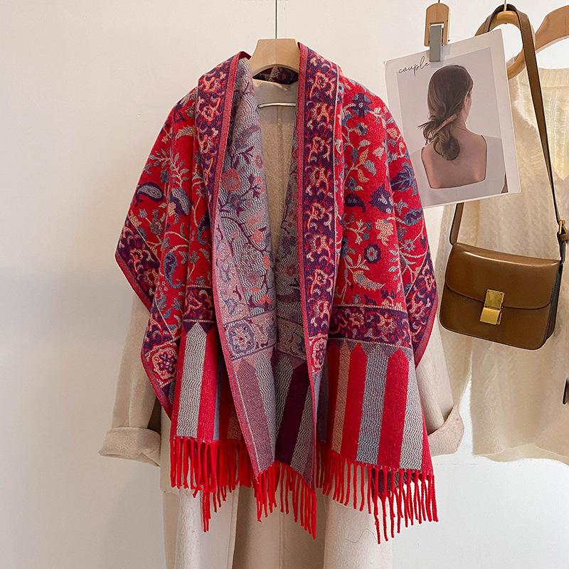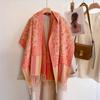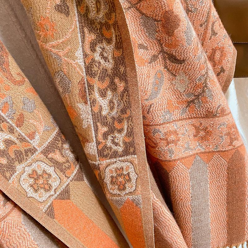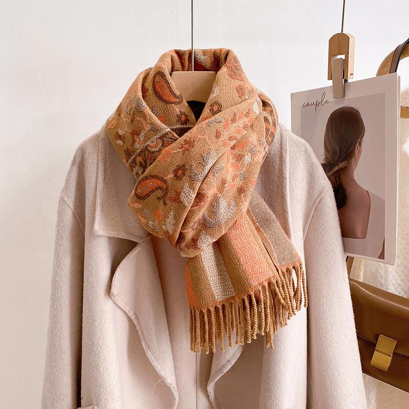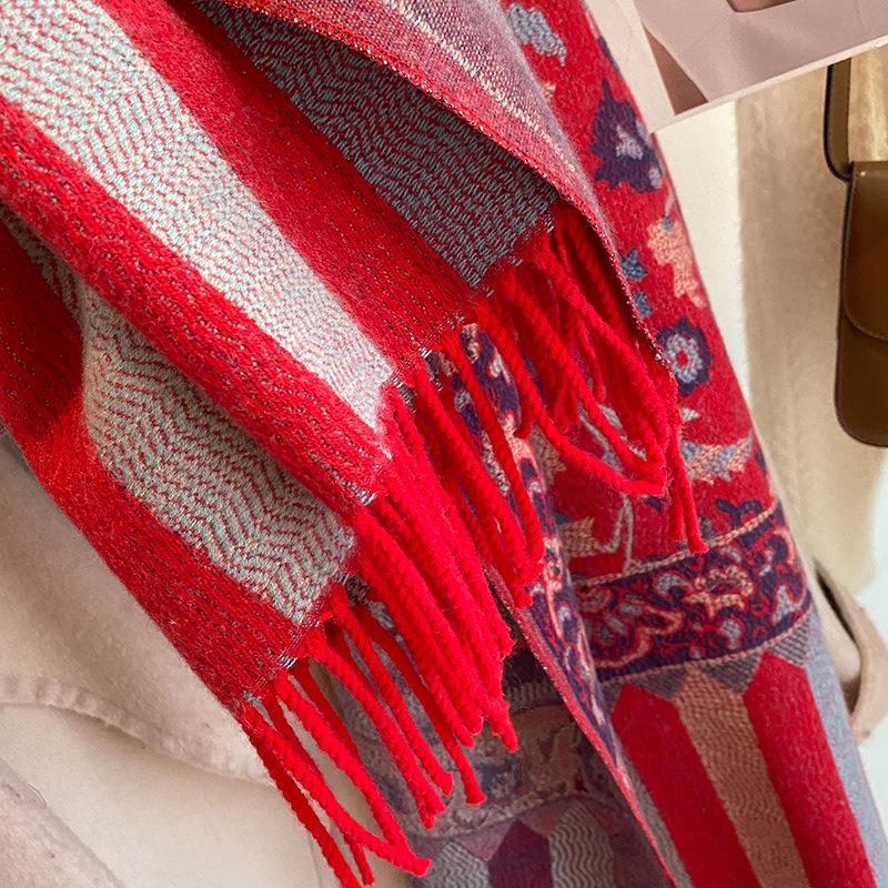 Chal Étnico Pequeño Floral con Borlas para Mujer Otoño e Invierno Hilo de Núcleo Hilado Bufanda Cálida Engrosada Imitación Cachemira Bufanda de Viaje
