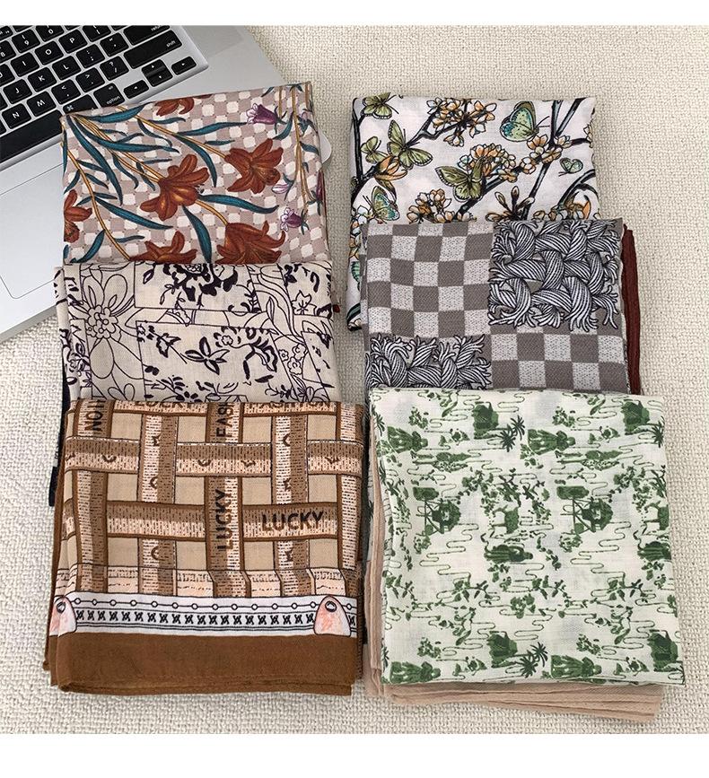 Pañuelo de Seda Cuadrado de Alta Gama 2025 Nuevo Combinable Algodón y Lino Estampado Pañuelo de Seda Pañuelo para la Cabeza Cinta para el Cabello Pañuelo Protector para el Cuello Bufanda