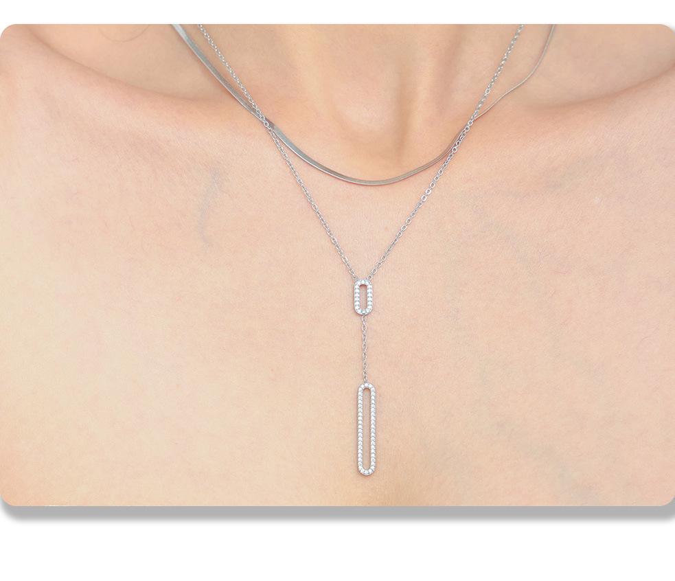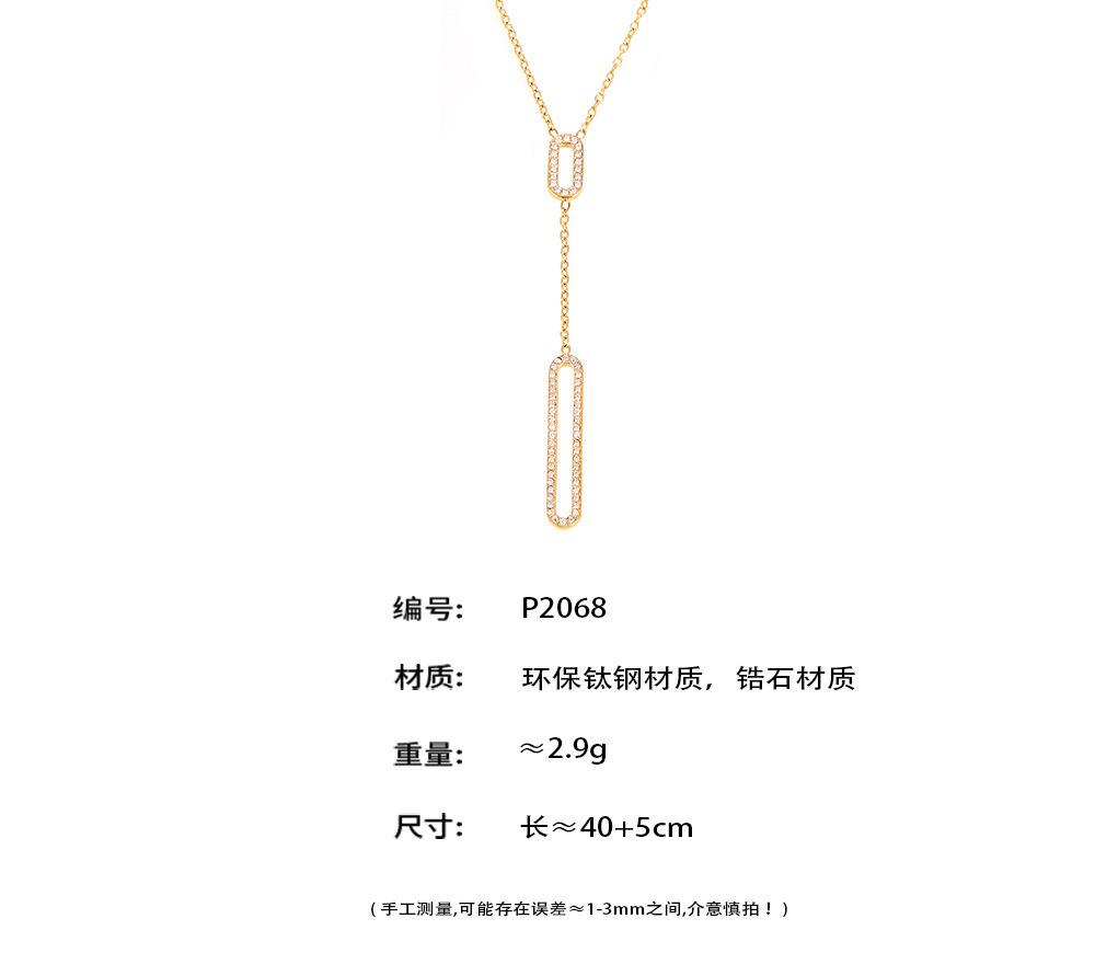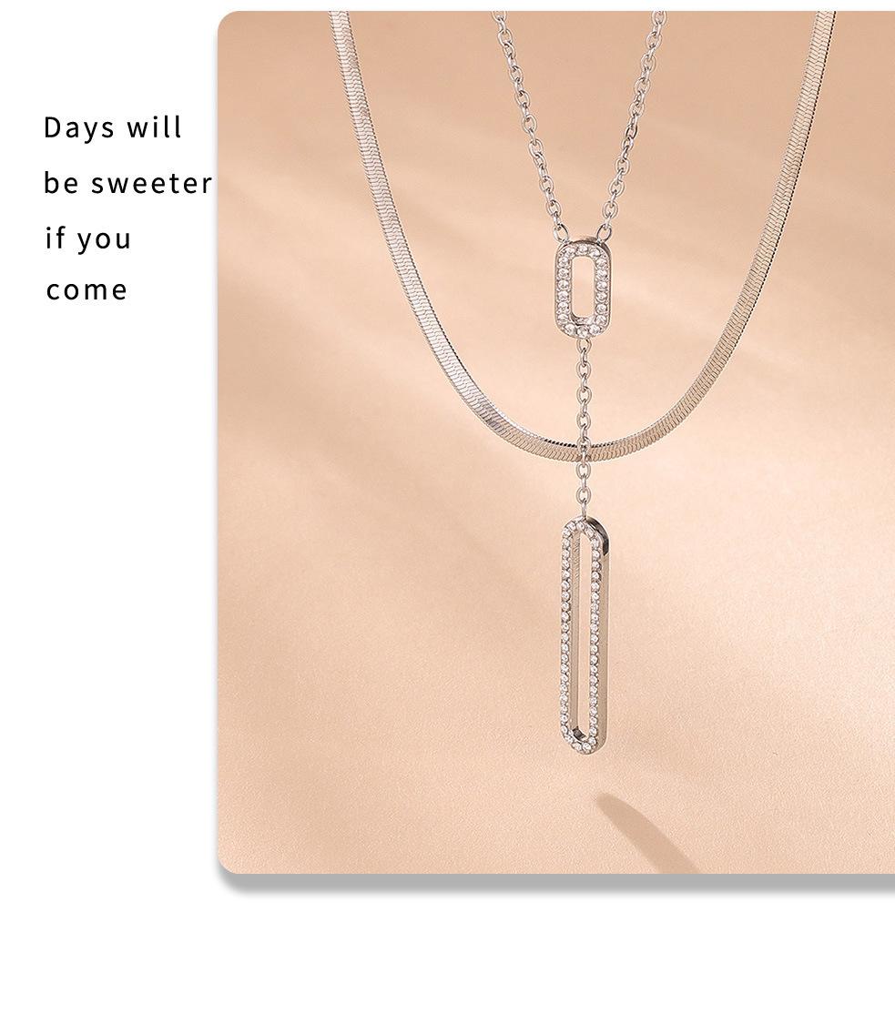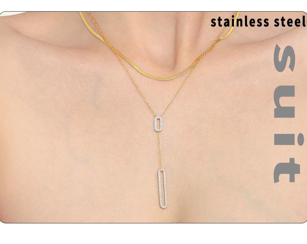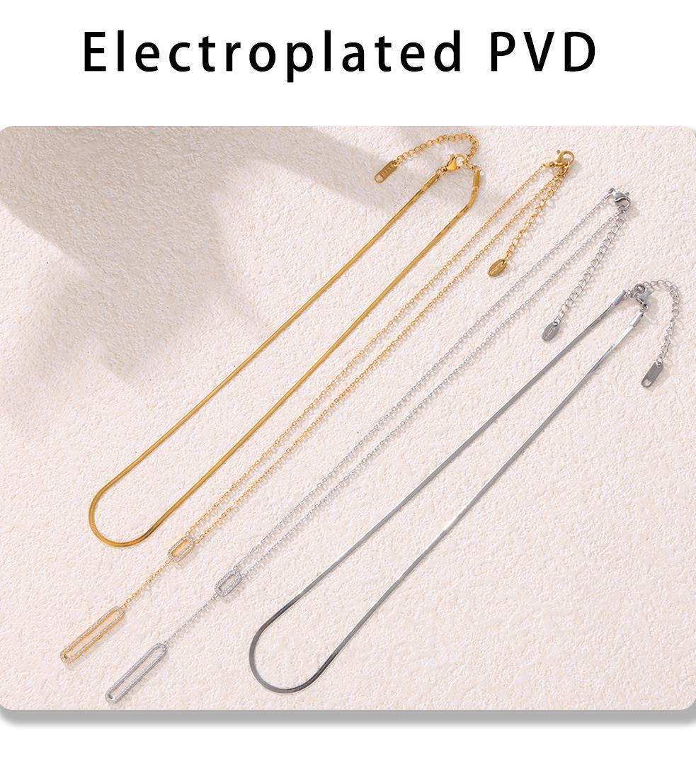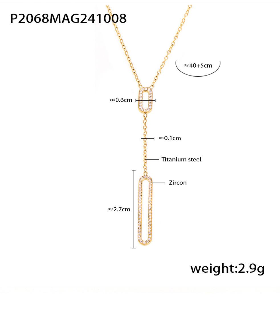 P2068-gold rectangle set zircon necklace, P1694-gold blade chain necklace, P1694-steel color blade chain necklace